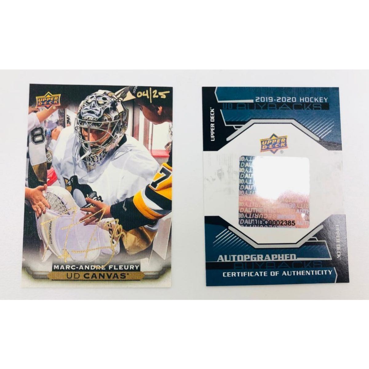 An Autographed Upper Deck Buy Back 2016 UD Canvas C186 Marc-Andre Fleury 04/25 With Upper Deck Buyback Certificate Of Authenticity. Please View Photos For Further Details.Â