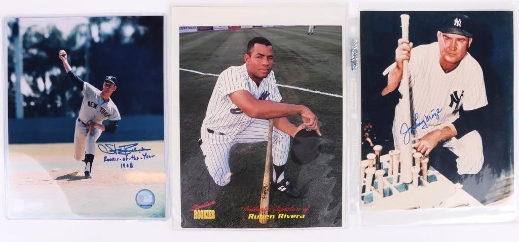 AUTOGRAPHED BASEBALL PHOTOGRAPHS MIZE, RIVERA, ETC