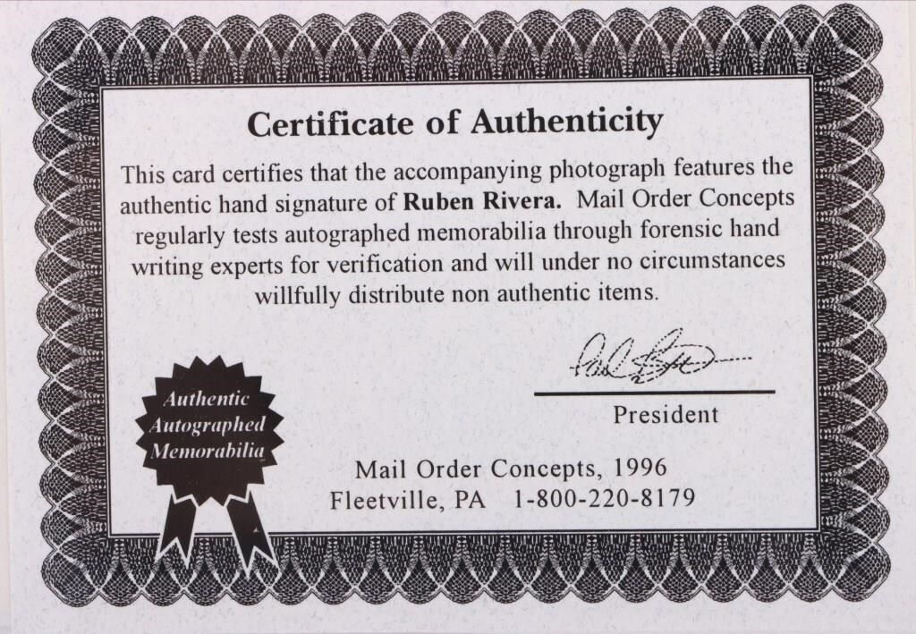 one (1) Ruben Rivera New York Mets autographed photograph with COA.