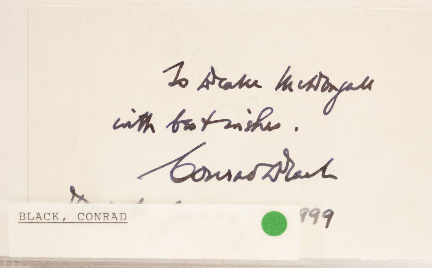 AUTOGRAPHED CONRAD BLACK INDEX CARD