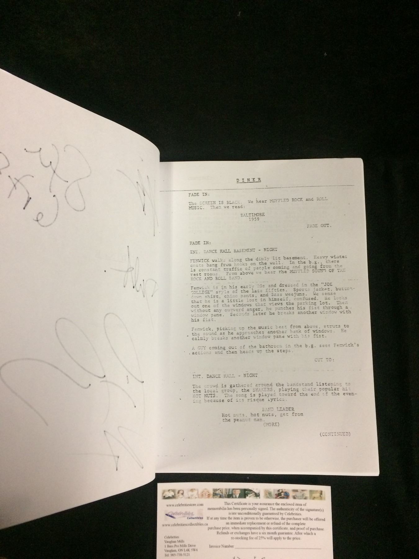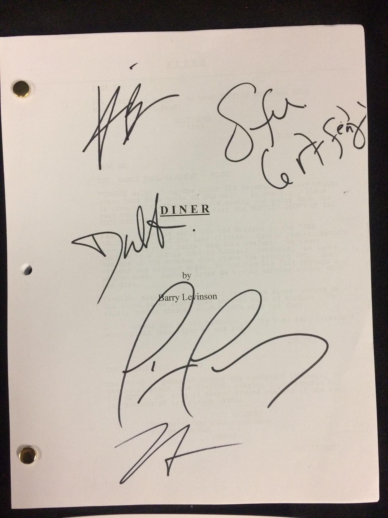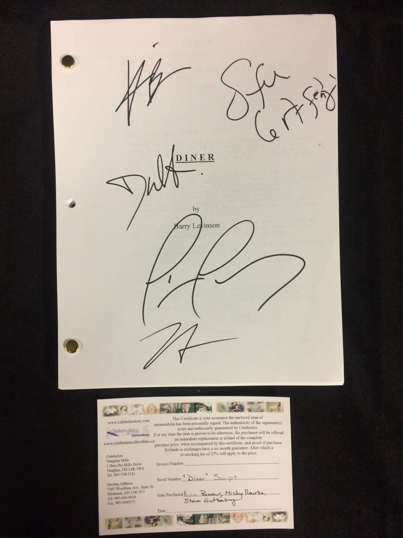 AUTOGRAPHED "DINER" SCRIPT (MICKEY ROURKE, STEVE GUTTENBERG, KEVIN BACON,TIM DALY, DANIEL STERN))