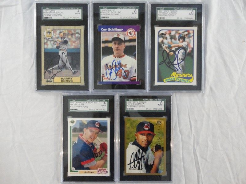 AUTOGRAPHED/GRADED SGC BASEBALL ROOKIE LOT (5) BARRY BONDS, SCHILLING, VIZQUEL,