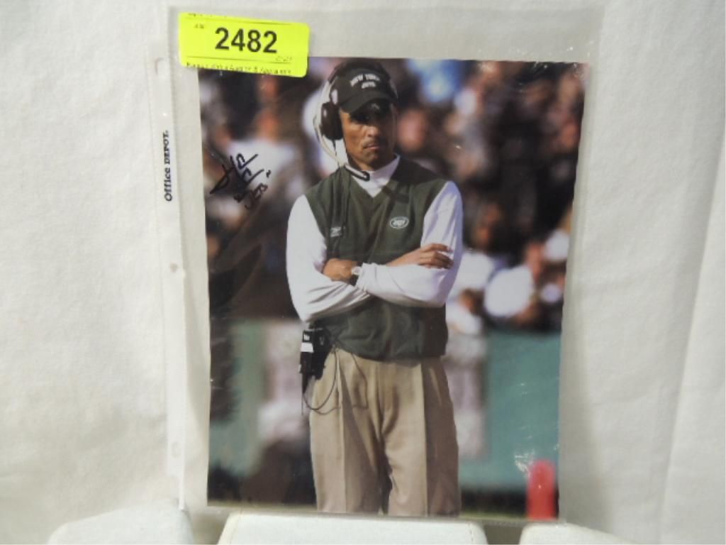 8X10 PHOTO NEW YORK JETS COACH HERMAN EDWARDS AUTOGRAPHED PHOTO. NO COA. PLEASE BE ADVISED, AND INFORMED REGARDING SIGNATURES OR AUTOGRAPHS THAT WE SELL AT AUCTION: WE ARE NOT AUTHENTICATORS, AND WE DO NOT AUTHENTICATE, OR VALIDATE ANY AUTOGRAPHS OR SIGNATURES THAT WE OFFER AT AUCTION. SOME AUTOGRAPHS OR SIGNATURES MAY COME WITH AN AUTHENTICATION FROM ANY ONE OF LITERALLY HUNDREDS OF AUTHENTICATORS ACROSS THE COUNTRY, AND AROUND THE WORLD. WE DO NOT ENDORSE ANY AUTHENTICATOR, NOR DO WE GUARANTEE THAT ANY AUTOGRAPH OR SIGNATURE IS AUTHENTIC, OR THAT IT WILL PASS AUTHENTICATION BY ANY AUTHENTICATOR. ALL AUTOGRAPHS OR SIGNATURES ARE SOLD