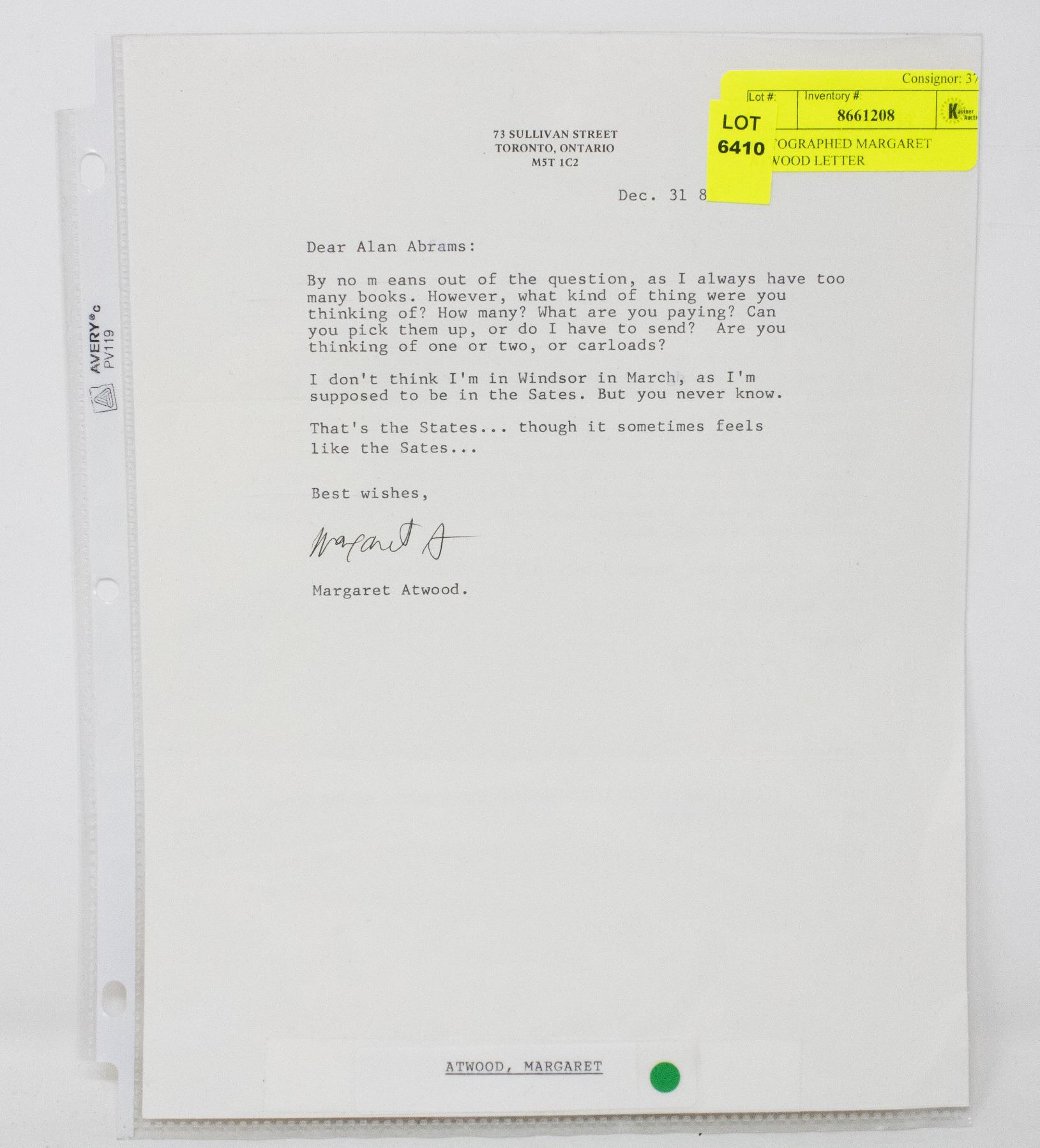AUTOGRAPHED MARGARET ATWOOD LETTER