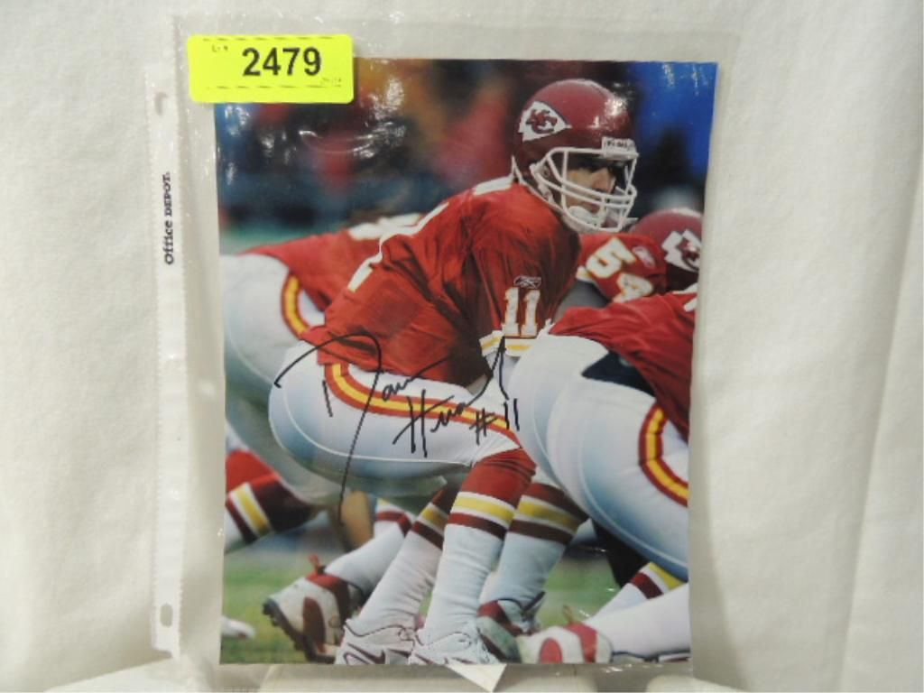 8X10 PHOTO KANSAS CITY CHIEFS QUARTERBACK DAMON HUARD AUTOGRAPHED PHOTO. INCLUDED PHOTO OF HUARD SIGNING PHOTO. PLEASE BE ADVISED, AND INFORMED REGARDING SIGNATURES OR AUTOGRAPHS THAT WE SELL AT AUCTION: WE ARE NOT AUTHENTICATORS, AND WE DO NOT AUTHENTICATE, OR VALIDATE ANY AUTOGRAPHS OR SIGNATURES THAT WE OFFER AT AUCTION. SOME AUTOGRAPHS OR SIGNATURES MAY COME WITH AN AUTHENTICATION FROM ANY ONE OF LITERALLY HUNDREDS OF AUTHENTICATORS ACROSS THE COUNTRY, AND AROUND THE WORLD. WE DO NOT ENDORSE ANY AUTHENTICATOR, NOR DO WE GUARANTEE THAT ANY AUTOGRAPH OR SIGNATURE IS AUTHENTIC, OR THAT IT WILL PASS AUTHENTICATION BY ANY AUTHENTICATOR. ALL AUTOGRAPHS OR SIGNATURES ARE SOLD