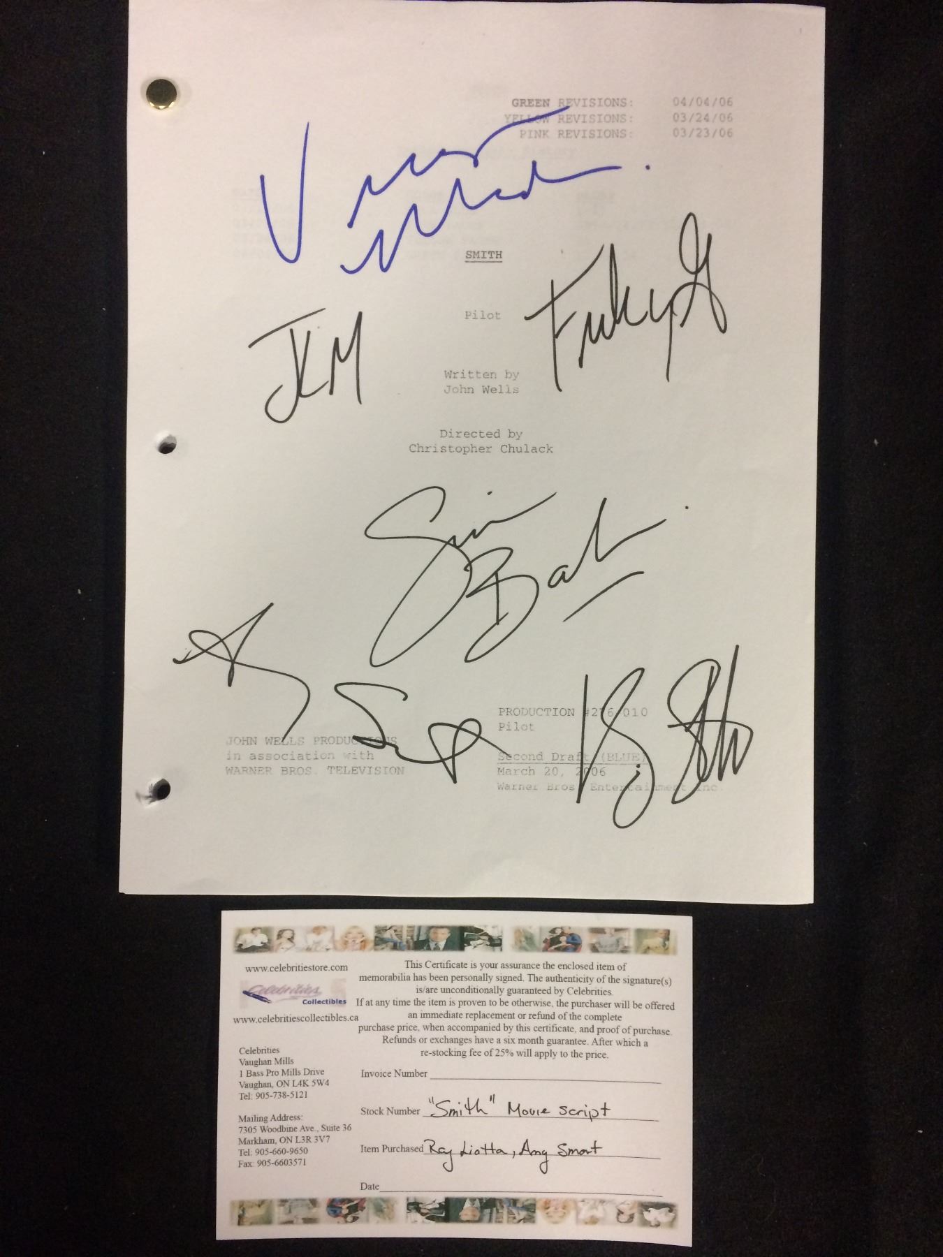 AUTOGRAPHED "SMITH" PILOT W/ COA (RAY LIOTTA, AMY SMART, SIMON BAKER, FRANKY G, VIRGINIA MADSON)