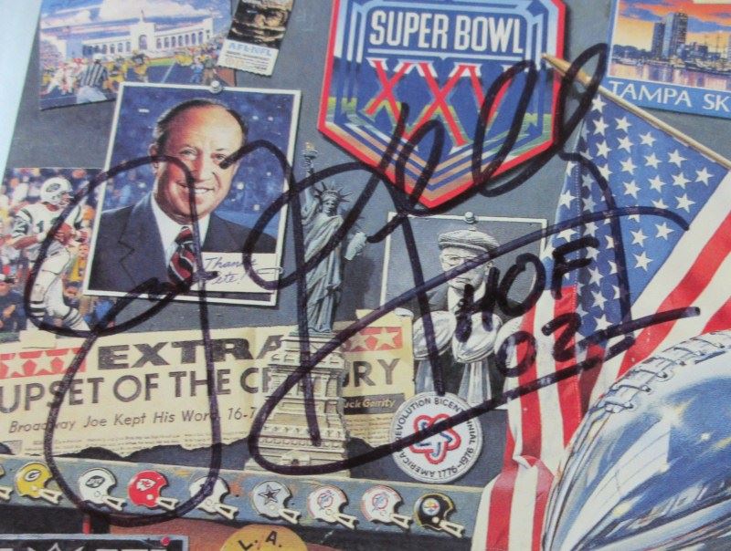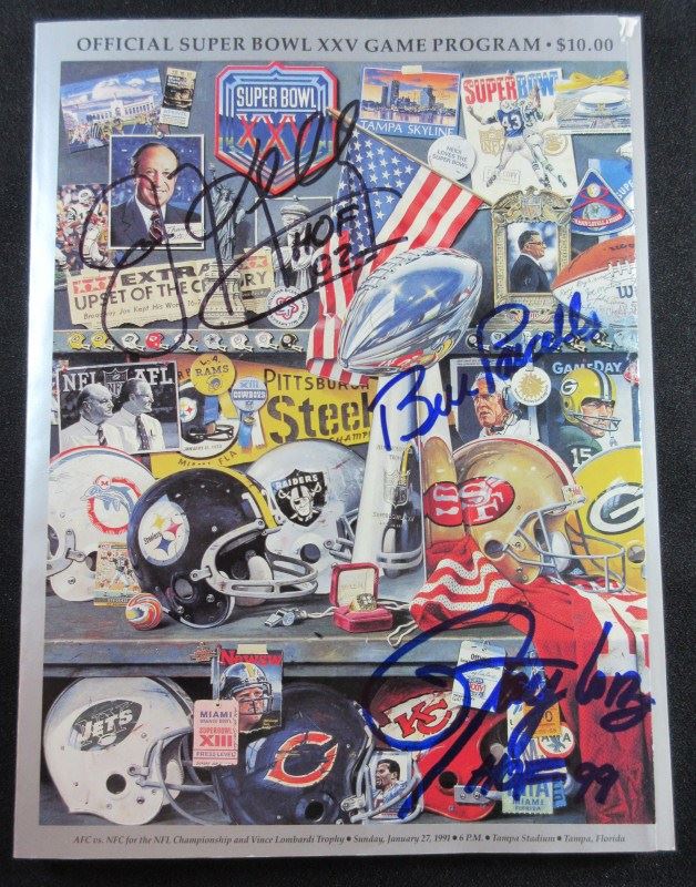 AUTOGRAPHED SUPER BOWL XXV PROGRAM, JIM KELLY - BILL PARCELLS - LAWRENCE TAYLOR