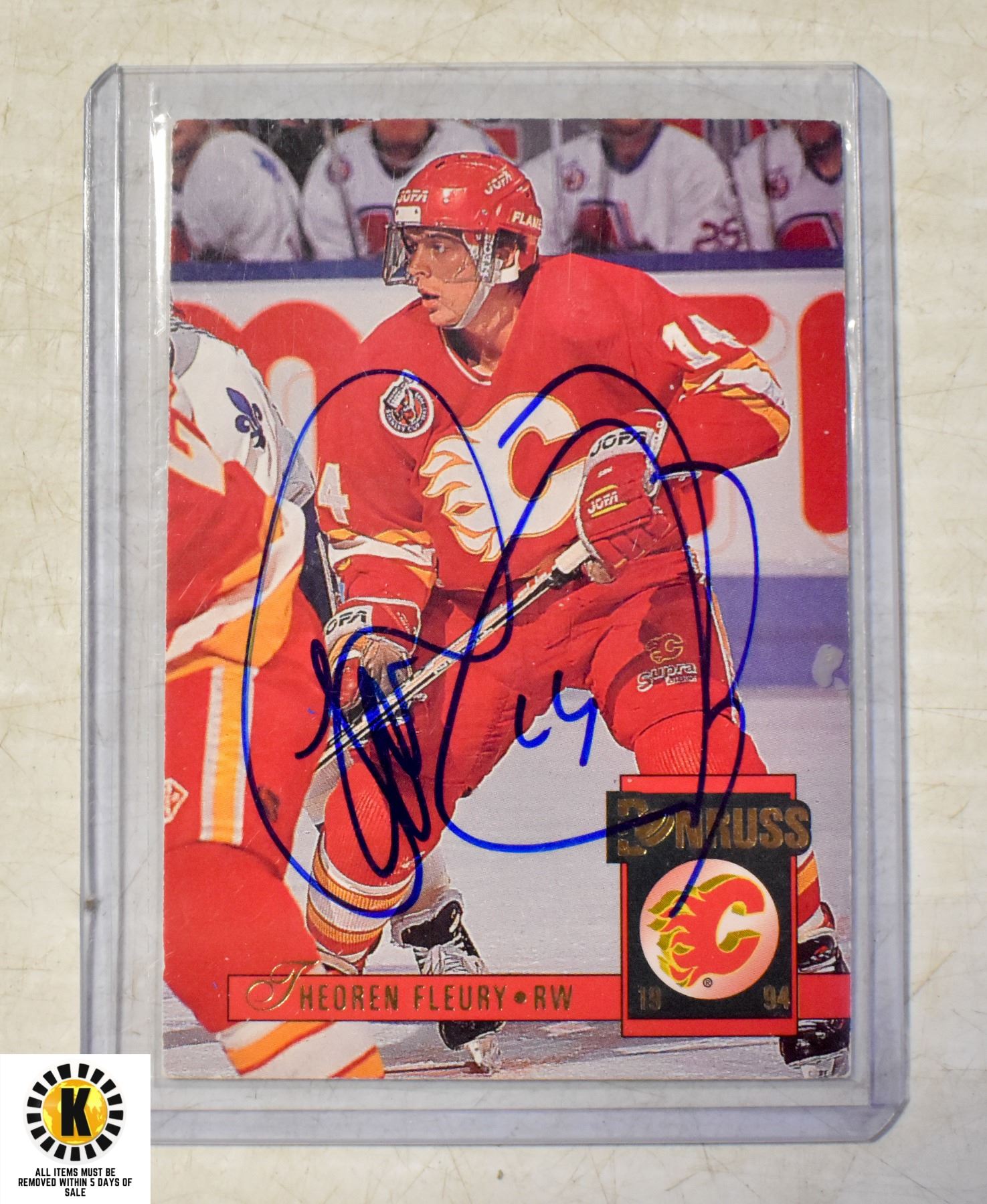 AUTOGRAPHED THEOREN FLEURY CALGARY FLAMES CARD
