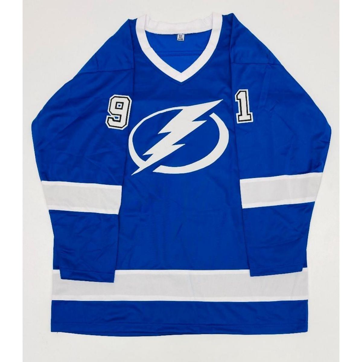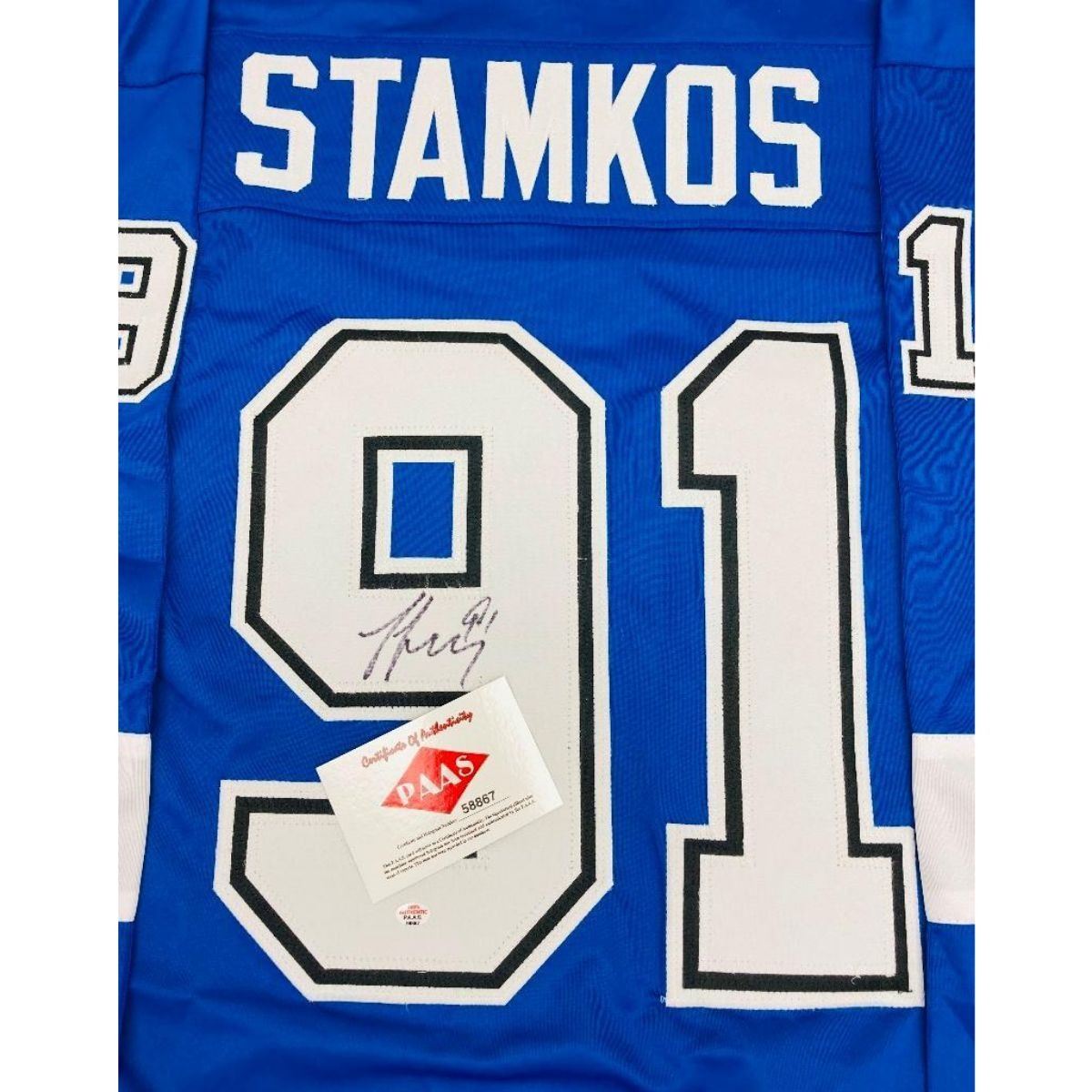 A Professionally Authenticated Steven Stamkos Autographed Tampa Bay Lightning Jersey Accompanied By PAAS Certificate Of Authenticity. Steven Stamkos (born February 7, 1990) is a Canadian professional ice hockey player and captain of the Tampa Bay Lightning of the National Hockey League (NHL). Stamkos was the first overall pick in the 2006 OHL Entry Draft, from the Markham Waxers of the Ontario Minor Hockey Association (OMHA).[1] Playing with the Sarnia Sting of the Ontario Hockey League (OHL), he scored 100 goals over two years. After a successful OHL career, Stamkos was selected first overall in the 2008 NHL Entry Draft by the Tampa Bay Lightning. He is a two-time Maurice Richard Trophy winner as the NHL's leading goal-scorer (2010 and 2012), is a two-time NHL Second Team All-Star (2011, 2012) and has been named to six NHL All-Star Games (2011, 2012, 2015, 2016, 2018, 2019). He has scored the most points of any player born in the 1990s.  Please View Photos For Further Details. Â