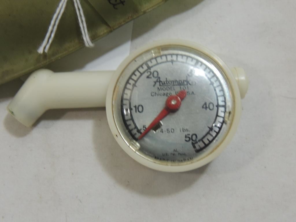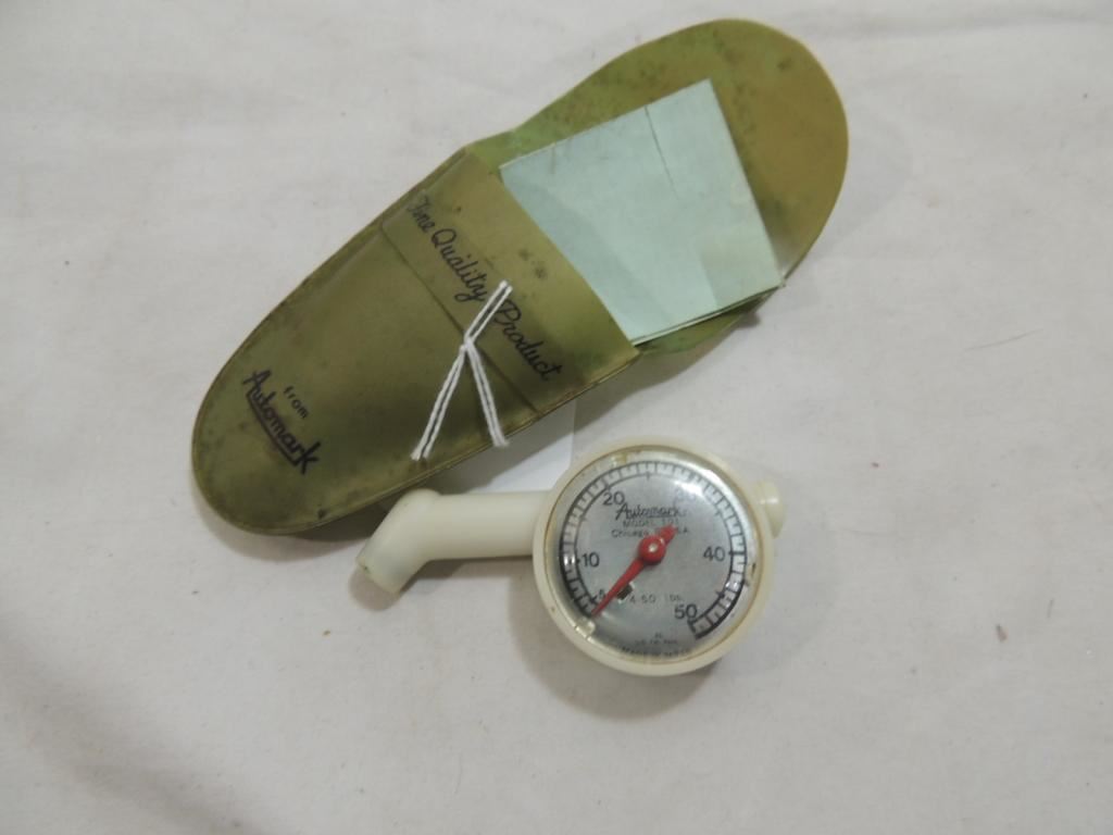 VINTAGE AUTOMARK TIRE GAUGE, VINTAGE PRESSURE GAUGE WITH CASE, VINTAGE AS SHOWN SEE PHOTO FOR MORE DETAILS