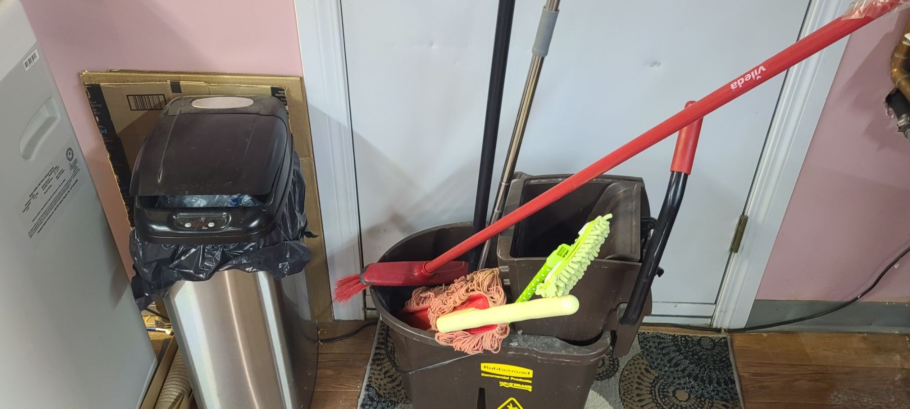 AUTOMATIC GARBAGE CAN AND RUBBERMAID MOPS