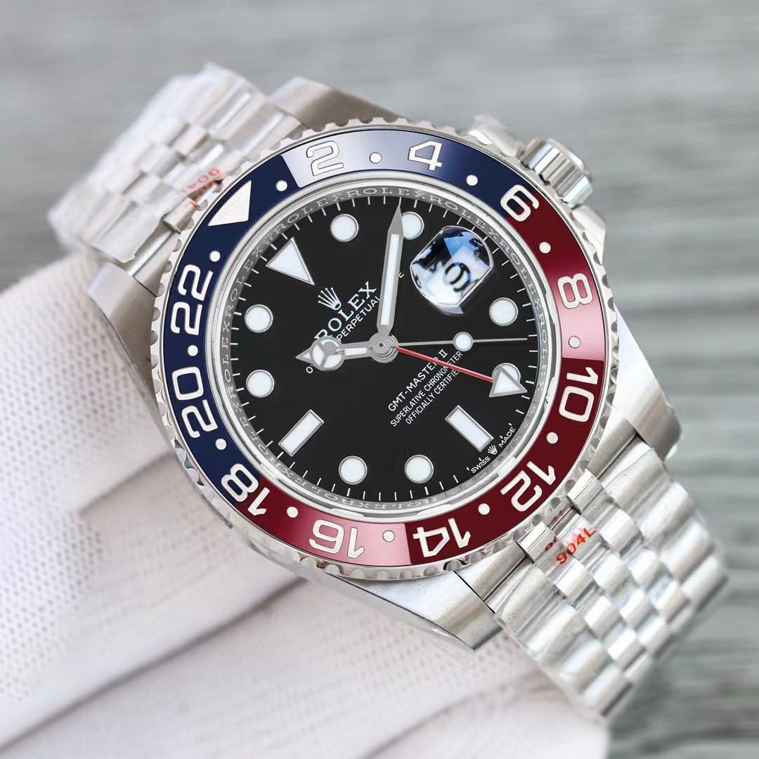 "PEPSI" WATCH. THE OYSTER PERPETUAL GMT-MASTER II FEATURES IN STEEL WITH A BLACK DIAL, PEPSI BEZEL AND A JUBILEE STYLE BRACELET. BOX INCLUDED.THIS TIMEPIECE IS A REPLICA OF THE ORIGINAL. **ALL ITEMS MUST BE REMOVED BY 5PM SATURDAY, NOVEMBER 4TH 2023. ALL REMAINING ITEMS WILL BE SUBJECT TO A $6.00 PER DAY STORAGE CHARGE. ANY ITEMS REMAINING AFTER MONDAY, NOVEMBER 18TH, 2023 WILL BE CONSIDERED FORFEITED. NO REFUNDS WILL BE ISSUED FOR FORFEITED ITEMS. TO SCHEDULE A PICK UP APPOINTMENT CLICK HERE