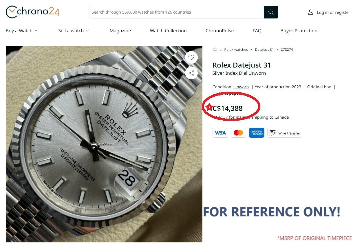 41MM & 31MM WATCHES. BOX, TAG, PAPERS, BAG, ALL INCLUDED.THIS TIMEPIECE IS AN EXACT REPLICA OF THE ORIGINAL TIMEPIECE. **ALL ITEMS MUST BE REMOVED BY 5PM SATURDAY, JANUARY 27TH, 2024. ALL REMAINING ITEMS WILL BE SUBJECT TO A $6.00 PER DAY STORAGE CHARGE. ANY ITEMS REMAINING AFTER MONDAY, FEBRUARY 12TH, 2024 WILL BE CONSIDERED FORFEITED. NO REFUNDS WILL BE ISSUED FOR FORFEITED ITEMS. TO SCHEDULE A PICK UP APPOINTMENT CLICK HERE