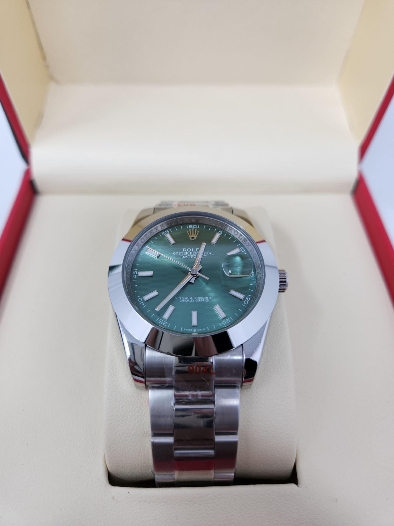 OYSTER STEEL WATCH. THIS OYSTER PERPETUAL DATEJUST 41 IN OYSTERSTEEL FEATURES A MINT GREEN, FLUTED-MOTIF DIAL AND A JUBILEE BRACELET. BOX, TAG, PAPERS, BAG, ALL INCLUDED.THIS TIMEPIECE IS AN EXACT REPLICA SUPERCLONE OF THE ORIGINAL. **ALL ITEMS MUST BE REMOVED BY 5PM SATURDAY, SEPTEMBER 2ND 2023. ALL REMAINING ITEMS WILL BE SUBJECT TO A $6.00 PER DAY STORAGE CHARGE. ANY ITEMS REMAINING AFTER MONDAY, SEPTEMBER 18TH, 2023 WILL BE CONSIDERED FORFEITED. NO REFUNDS WILL BE ISSUED FOR FORFEITED ITEMS. TO SCHEDULE A PICK UP APPOINTMENT CLICK HERE