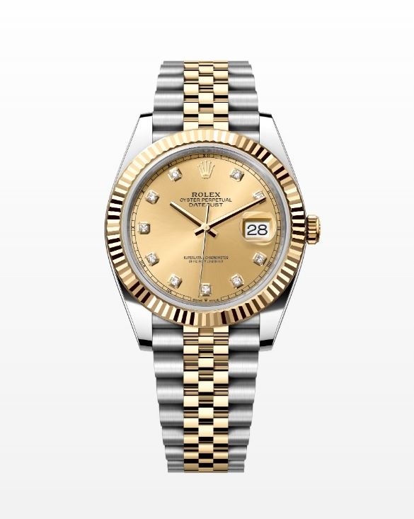THE OYSTER PERPETUAL DATEJUST 41 IN CHAMPAGNE COLOR DIAL WITH A FLUTED BEZEL AND A JUBILEE BRACELET. BOX, TAG, PAPERS, BAG, ALL INCLUDED.THIS TIMEPIECE IS AN EXACT REPLICA OF THE ORIGINAL. **ALL ITEMS MUST BE REMOVED BY 5PM SATURDAY, MARCH 1ST 2025. ALL REMAINING ITEMS WILL BE SUBJECT TO A $6.00 PER DAY STORAGE CHARGE. ANY ITEMS REMAINING AFTER MONDAY, MARCH 17TH 2025 WILL BE CONSIDERED FORFEITED. NO REFUNDS WILL BE ISSUED FOR FORFEITED ITEMS. TO SCHEDULE A PICK UP APPOINTMENT CLICK HERE