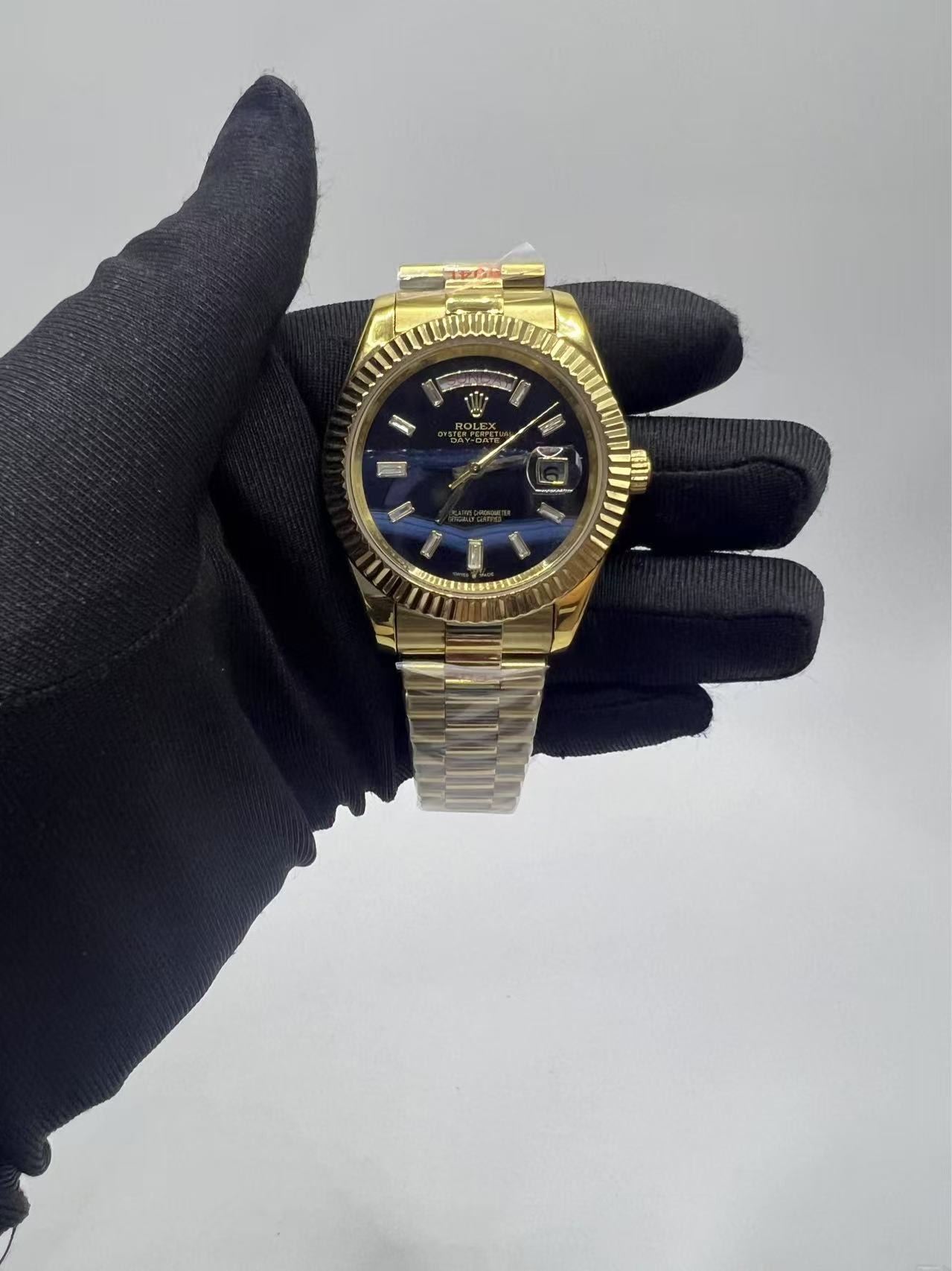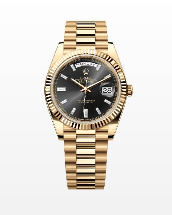 THE OYSTER PERPETUAL DAY-DATE 40 IN BLACK COLOR DIAL WITH A FLUTED BEZEL AND A JUBILEE BRACELET. BOX, TAG, PAPERS, BAG, ALL INCLUDED.THIS TIMEPIECE IS AN EXACT REPLICA OF THE ORIGINAL. **ALL ITEMS MUST BE REMOVED BY 5PM SATURDAY, MARCH 22ND 2025. ALL REMAINING ITEMS WILL BE SUBJECT TO A $6.00 PER DAY STORAGE CHARGE. ANY ITEMS REMAINING AFTER MONDAY, APRIL 7TH 2025 WILL BE CONSIDERED FORFEITED. NO REFUNDS WILL BE ISSUED FOR FORFEITED ITEMS. TO SCHEDULE A PICK UP APPOINTMENT CLICK HERE