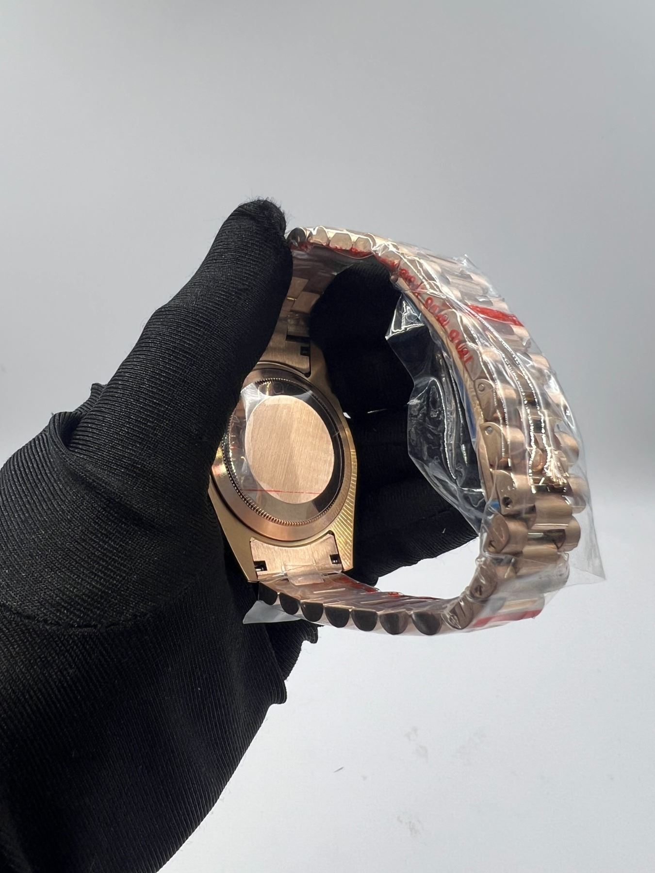 THE OYSTER PERPETUAL DAY-DATE 40 IN EVERROSE GOLD COLOR WITH A CRYSTAL BEZEL AND A JUBILEE BRACELET. BOX, TAG, PAPERS, BAG, ALL INCLUDED.THIS TIMEPIECE IS AN EXACT REPLICA OF THE ORIGINAL. **ALL ITEMS MUST BE REMOVED BY 5PM SATURDAY, NOVEMBER 29TH 2025. ALL REMAINING ITEMS WILL BE SUBJECT TO A $6.00 PER DAY STORAGE CHARGE. ANY ITEMS REMAINING AFTER MONDAY, DECEMBER 15TH 2025 WILL BE CONSIDERED FORFEITED. NO REFUNDS WILL BE ISSUED FOR FORFEITED ITEMS. TO SCHEDULE A PICK UP APPOINTMENT CLICK HERE