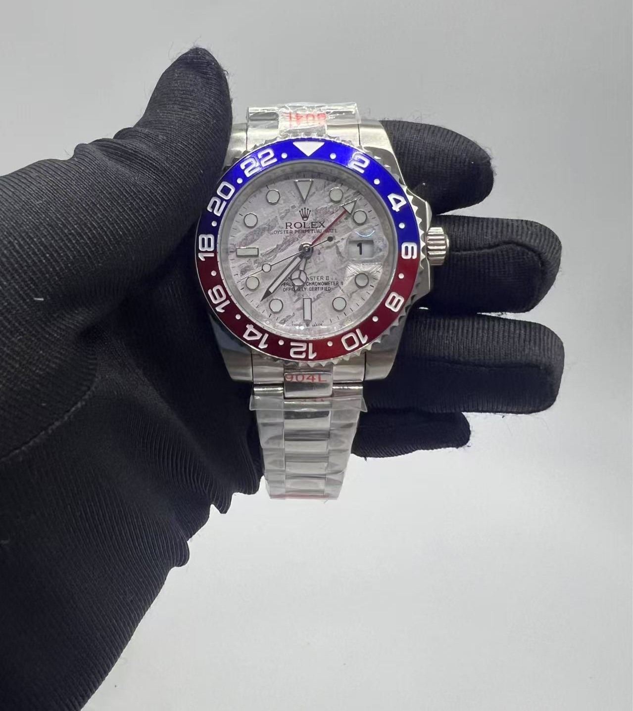 "PEPSI" WATCH. THE OYSTER PERPETUAL GMT-MASTER II FEATURES IN STEEL WITH A 40MM METEORITE DIAL, PEPSI BEZEL AND A OYSTER STYLE BRACELET. BOX INCLUDED.THIS TIMEPIECE IS A REPLICA OF THE ORIGINAL **ALL ITEMS MUST BE REMOVED BY 5PM SATURDAY, MARCH 8TH 2025. ALL REMAINING ITEMS WILL BE SUBJECT TO A $6.00 PER DAY STORAGE CHARGE. ANY ITEMS REMAINING AFTER MONDAY, MARCH 24TH 2025 WILL BE CONSIDERED FORFEITED. NO REFUNDS WILL BE ISSUED FOR FORFEITED ITEMS. TO SCHEDULE A PICK UP APPOINTMENT CLICK HERE