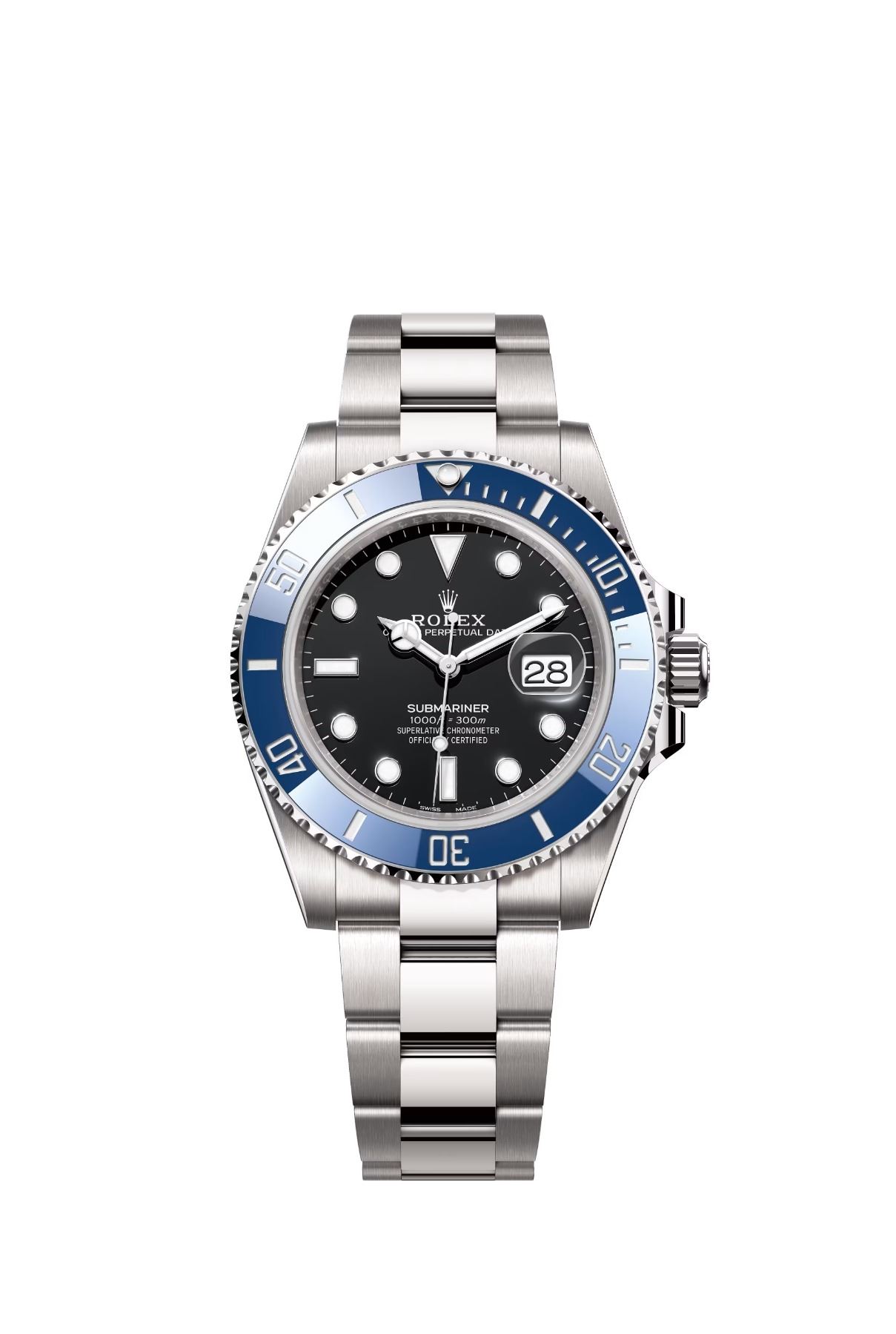 THE OYSTER PERPETUAL SUBMARINER DATE 41 WITH A BLUE CERAMIC BEZEL AND A BLACK DIAL, LUMINESCENT HOUR MARKERS. BOX, TAG, PAPERS, BAG, ALL INCLUDED.THIS TIMEPIECE IS AN EXACT REPLICA OF THE ORIGINAL. **ALL ITEMS MUST BE REMOVED BY 5PM SATURDAY, JUNE 1ST 2024. ALL REMAINING ITEMS WILL BE SUBJECT TO A $6.00 PER DAY STORAGE CHARGE. ANY ITEMS REMAINING AFTER MONDAY, JUNE 17TH 2024 WILL BE CONSIDERED FORFEITED. NO REFUNDS WILL BE ISSUED FOR FORFEITED ITEMS. TO SCHEDULE A PICK UP APPOINTMENT CLICK HERE