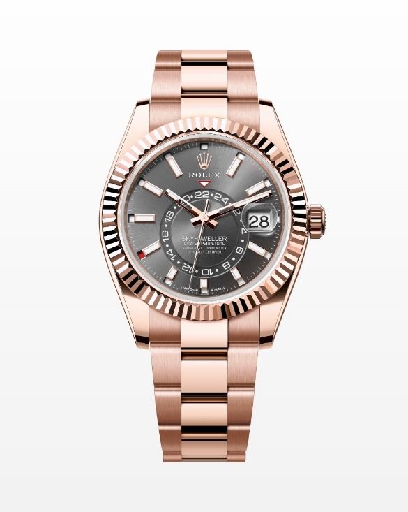 THE OYSTER PERPETUAL SKYDWELLER 42MM WITH A CHOCOLATE COLOR DIAL, FLUTED BEZEL AND A OYSTER BRACELET. BOX, TAG, PAPERS, BAG, ALL INCLUDED.THIS TIMEPIECE IS AN EXACT REPLICA OF THE ORIGINAL. **ALL ITEMS MUST BE REMOVED BY 5PM SATURDAY, JUNE 14TH 2025. ALL REMAINING ITEMS WILL BE SUBJECT TO A $6.00 PER DAY STORAGE CHARGE. ANY ITEMS REMAINING AFTER MONDAY, JUNE 30TH, 2025 WILL BE CONSIDERED FORFEITED. NO REFUNDS WILL BE ISSUED FOR FORFEITED ITEMS. TO SCHEDULE A PICK UP APPOINTMENT CLICK HERE