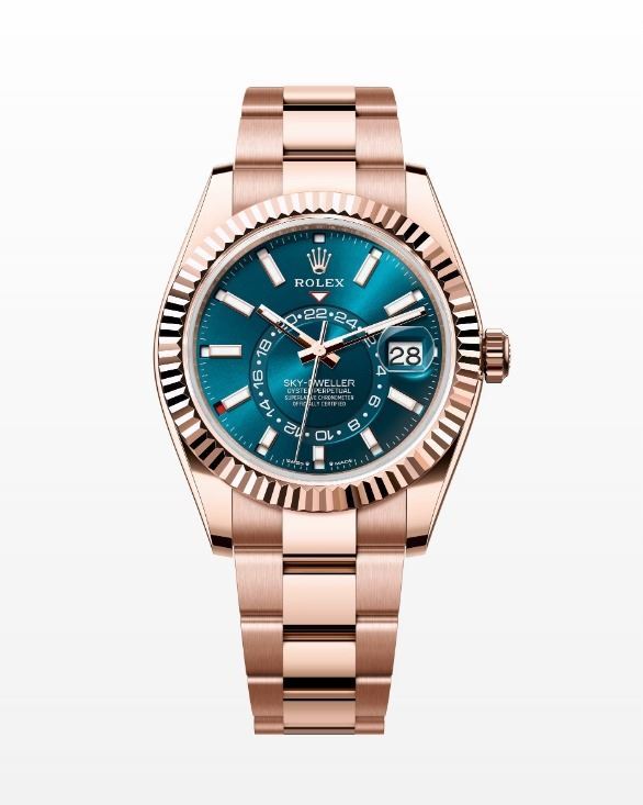 THE OYSTER PERPETUAL SKYDWELLER 42MM WITH A BLUE-GREEN COLOR DIAL, FLUTED BEZEL AND A OYSTER BRACELET. BOX, TAG, PAPERS, BAG, ALL INCLUDED.THIS TIMEPIECE IS AN EXACT REPLICA OF THE ORIGINAL. **ALL ITEMS MUST BE REMOVED BY 5PM SATURDAY, AUGUST 9 2025. ALL REMAINING ITEMS WILL BE SUBJECT TO A $6.00 PER DAY STORAGE CHARGE. ANY ITEMS REMAINING AFTER MONDAY, AUGUST 25TH 2025 WILL BE CONSIDERED FORFEITED. NO REFUNDS WILL BE ISSUED FOR FORFEITED ITEMS. TO SCHEDULE A PICK UP APPOINTMENT CLICK HERE