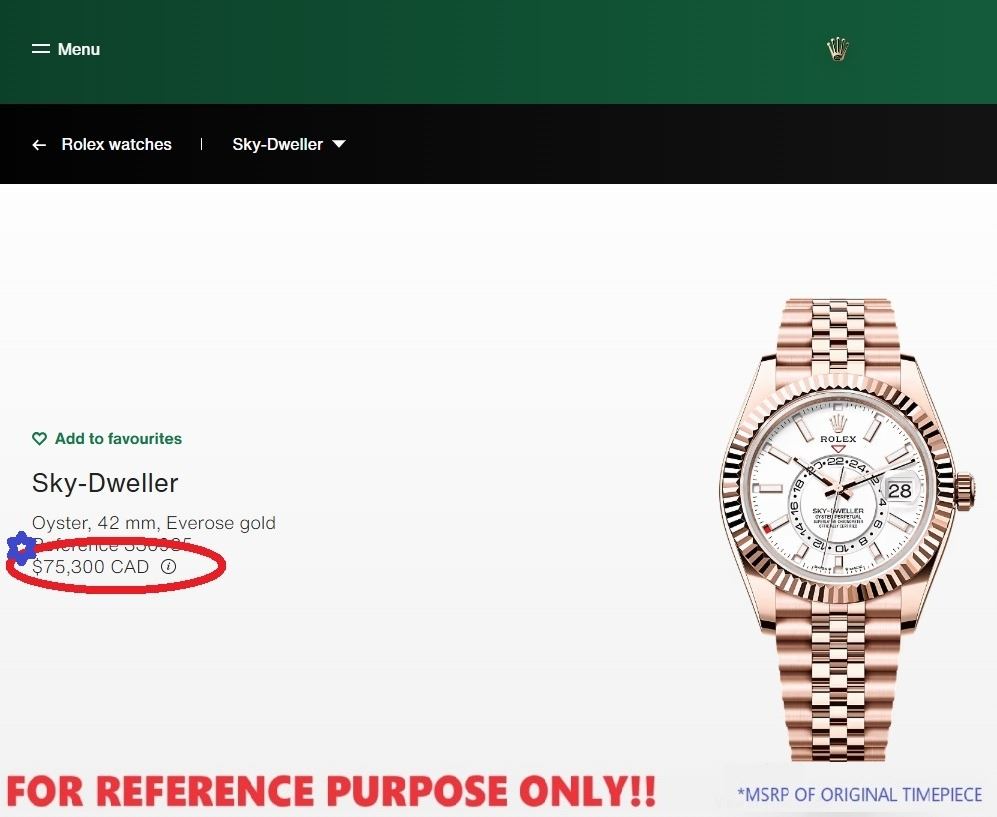 THE OYSTER PERPETUAL SKYDWELLER 42MM WITH A WHITE TONE DIAL, FLUTED BEZEL AND A JUBILEE BRACELET. BOX, TAG, PAPERS, BAG, ALL INCLUDED.THIS TIMEPIECE IS AN EXACT REPLICA OF THE ORIGINAL. **ALL ITEMS MUST BE REMOVED BY 5PM SATURDAY, OCTOBER 4TH 2025. ALL REMAINING ITEMS WILL BE SUBJECT TO A $6.00 PER DAY STORAGE CHARGE. ANY ITEMS REMAINING AFTER MONDAY, OCTOBER 20TH 2025 WILL BE CONSIDERED FORFEITED. NO REFUNDS WILL BE ISSUED FOR FORFEITED ITEMS. TO SCHEDULE A PICK UP APPOINTMENT CLICK HERE