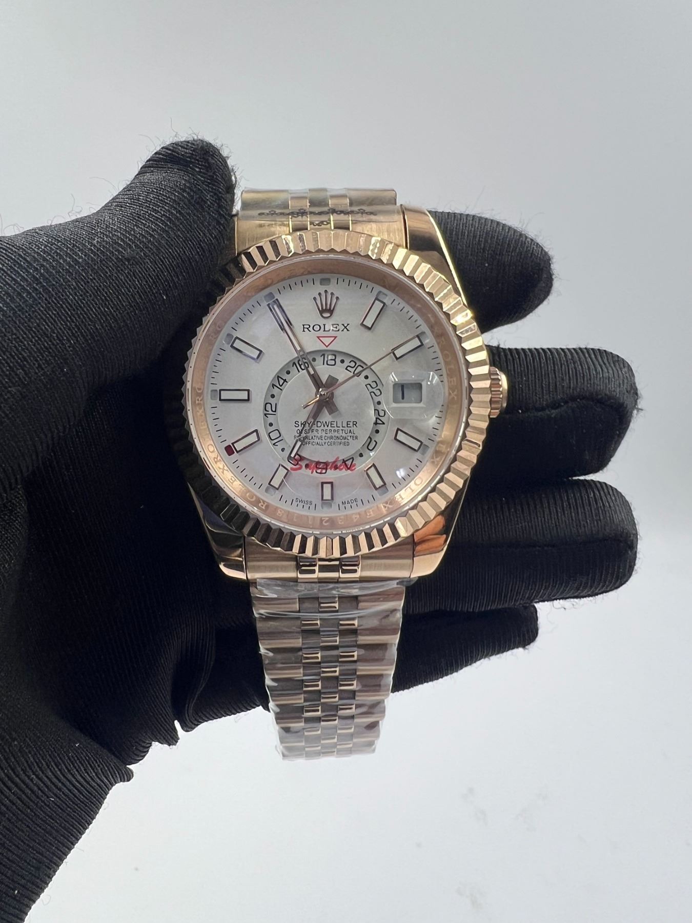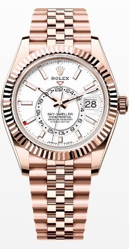 THE OYSTER PERPETUAL SKYDWELLER 42MM WITH A WHITE TONE DIAL, FLUTED BEZEL AND A JUBILEE BRACELET. BOX, TAG, PAPERS, BAG, ALL INCLUDED.THIS TIMEPIECE IS AN EXACT REPLICA OF THE ORIGINAL. **ALL ITEMS MUST BE REMOVED BY 5PM SATURDAY, NOVEMBER 8th 2025. ALL REMAINING ITEMS WILL BE SUBJECT TO A $6.00 PER DAY STORAGE CHARGE. ANY ITEMS REMAINING AFTER MONDAY, NOVEMBER 24TH 2025 WILL BE CONSIDERED FORFEITED. NO REFUNDS WILL BE ISSUED FOR FORFEITED ITEMS. TO SCHEDULE A PICK UP APPOINTMENT CLICK HERE