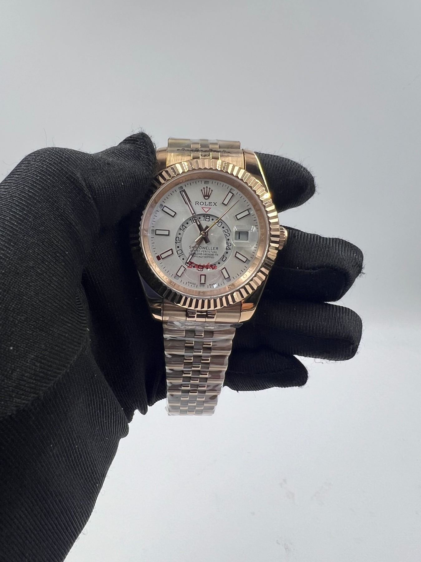 THE OYSTER PERPETUAL SKYDWELLER 42MM WITH A WHITE TONE DIAL, FLUTED BEZEL AND A JUBILEE BRACELET. BOX, TAG, PAPERS, BAG, ALL INCLUDED.THIS TIMEPIECE IS AN EXACT REPLICA OF THE ORIGINAL. **ALL ITEMS MUST BE REMOVED BY 5PM SATURDAY, NOVEMBER 22ND 2025. ALL REMAINING ITEMS WILL BE SUBJECT TO A $6.00 PER DAY STORAGE CHARGE. ANY ITEMS REMAINING AFTER MONDAY, DECEMBER 8TH 2025 WILL BE CONSIDERED FORFEITED. NO REFUNDS WILL BE ISSUED FOR FORFEITED ITEMS. TO SCHEDULE A PICK UP APPOINTMENT CLICK HERE