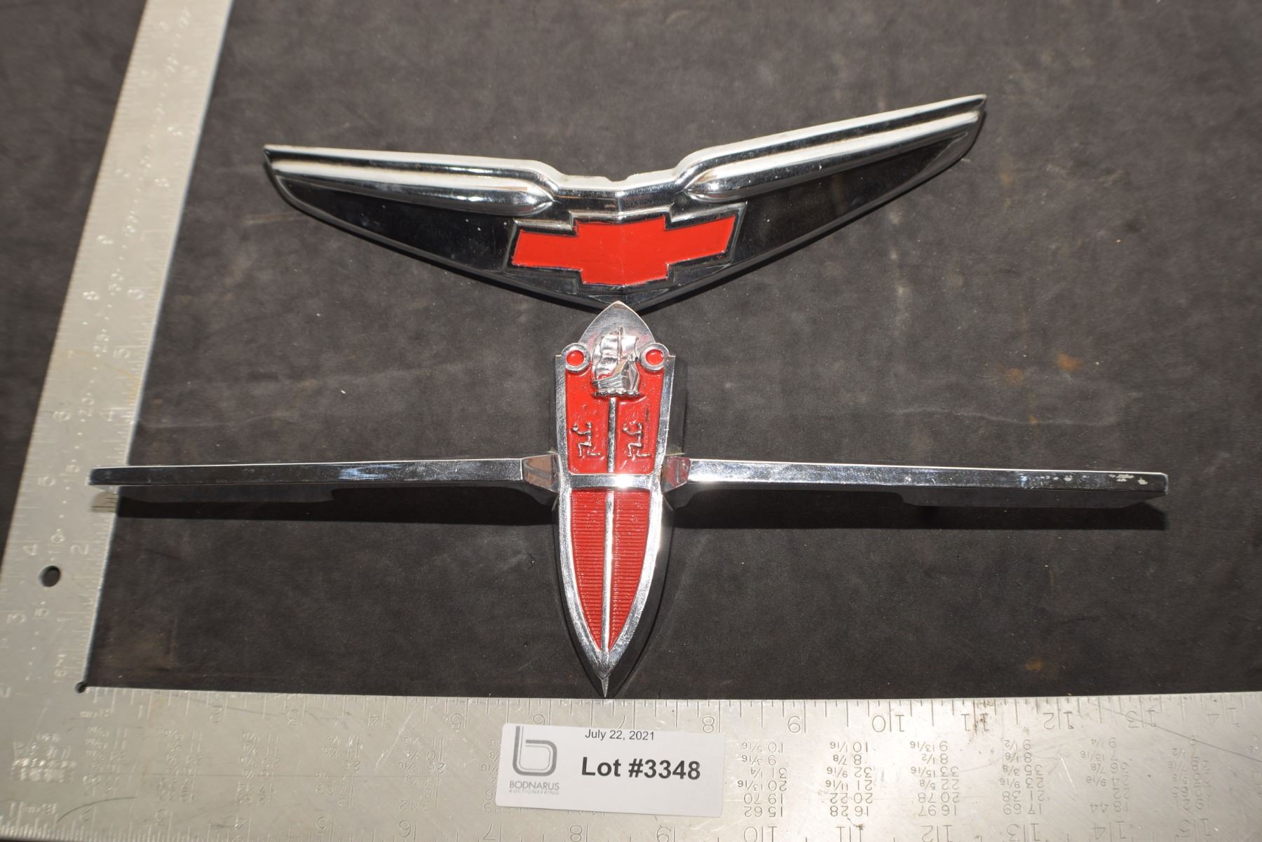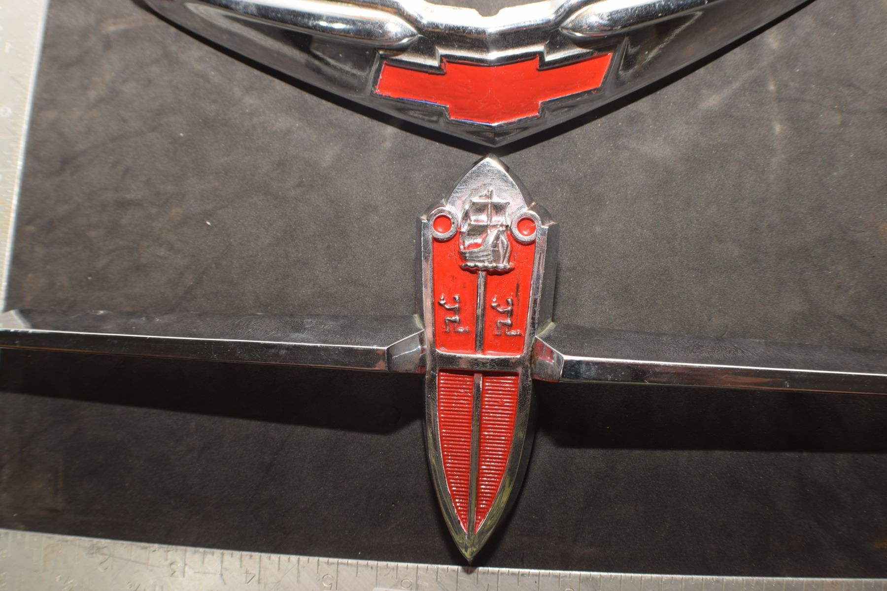 AUTOMOTIVE ANTIQUE SCRIPT EMBLEM .....CHEVROLET 1948 PLYMOUTH 1955