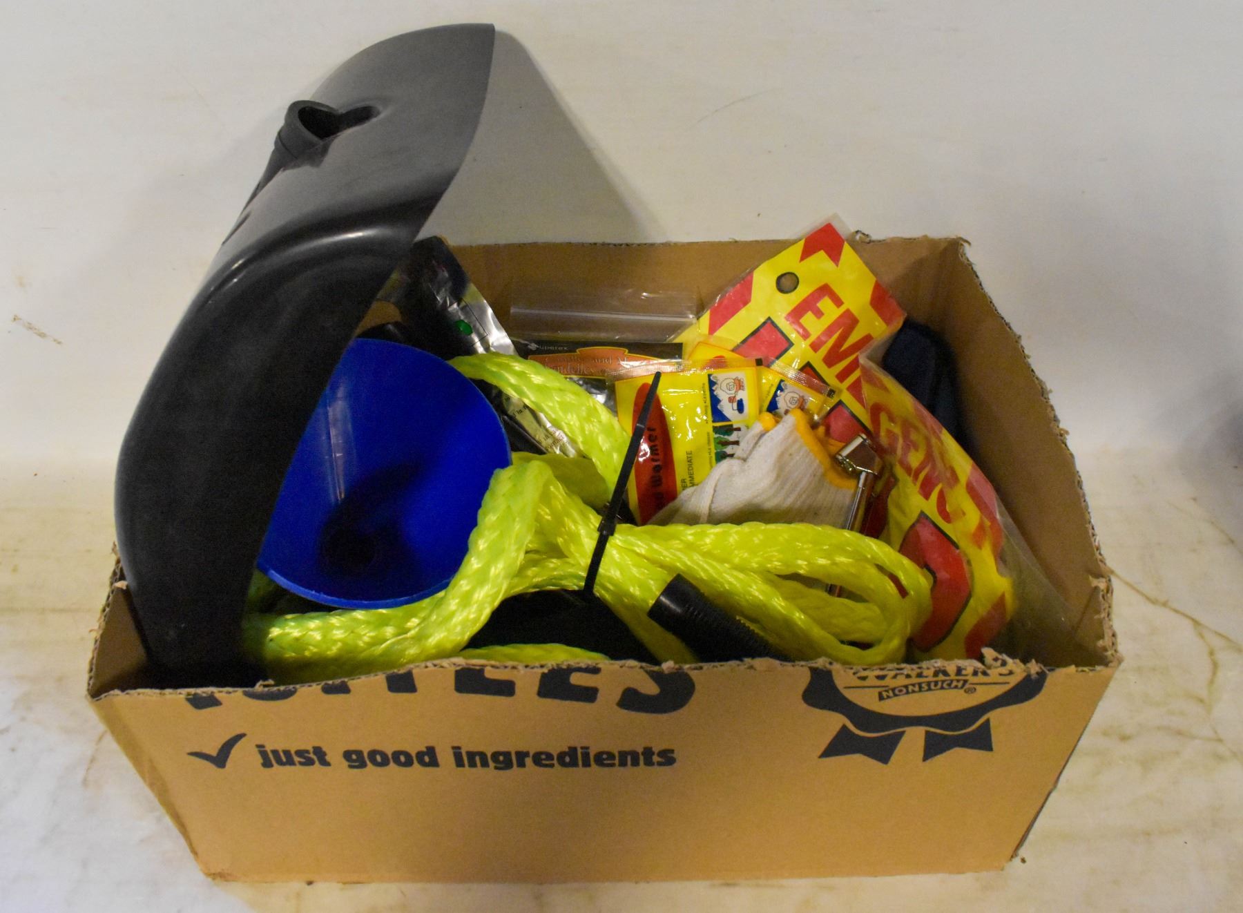 SHOVEL, SIGNAL GLOW LIGHT, HELP WINDOW SIGN, ETC