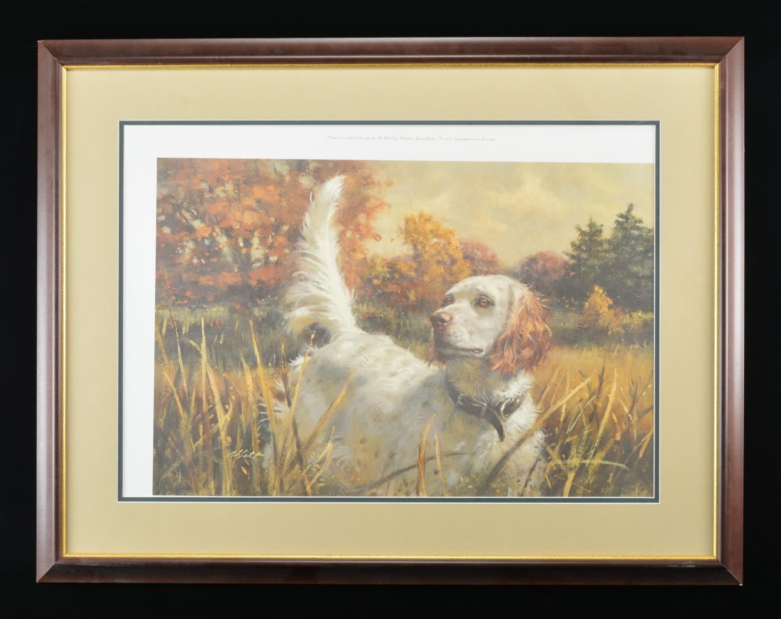 The Bird Dog Foundation presented their 1995 annual fine art print as a 900 signed limited edition This print is 16" x 24" on acid free archival paper. UNATTACHED ACCESSORIES: pouch on back of print has paperwork including copy of Certificate of Authenticity. CONDITION: Print has not been removed for inspection. Balance very good w/ light tears to back paper & light handling marks. PROVENANCE: From the Collection of Thomas B. & Freeda Harper Jr. (02-16552/MD). $150-300.