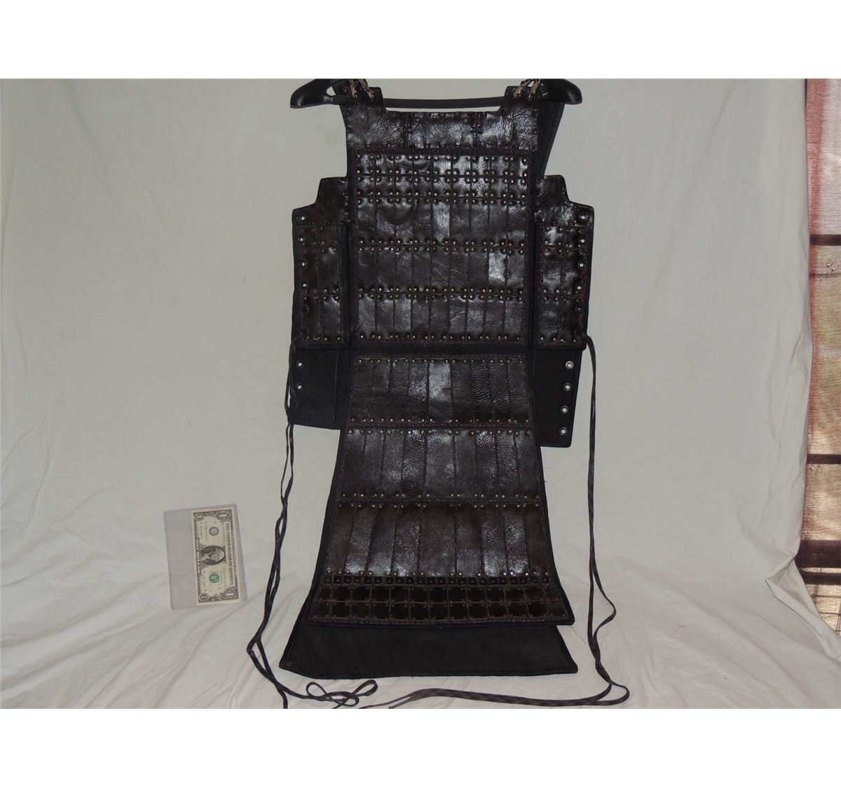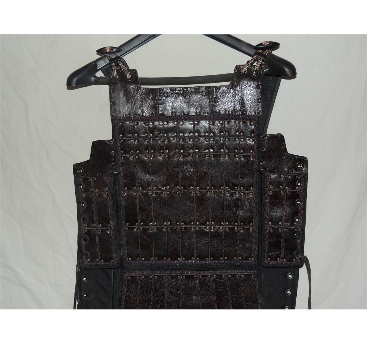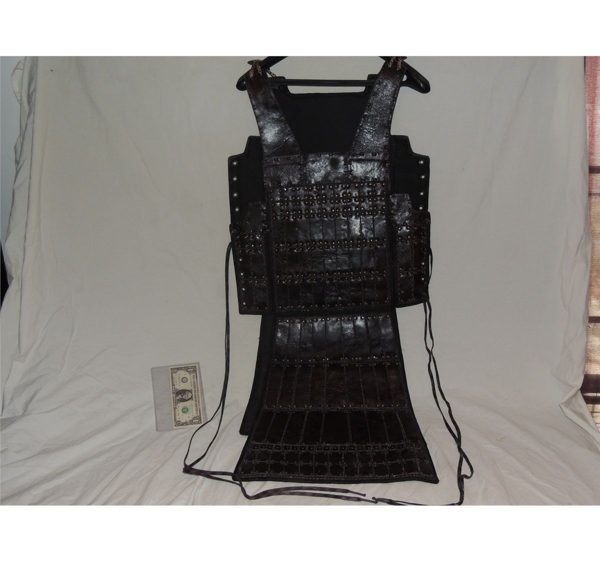 This is 1 of several Ancient Mongolian Warrior all leather armor of this type. These are from a noted film, but I can not cite the title in title.