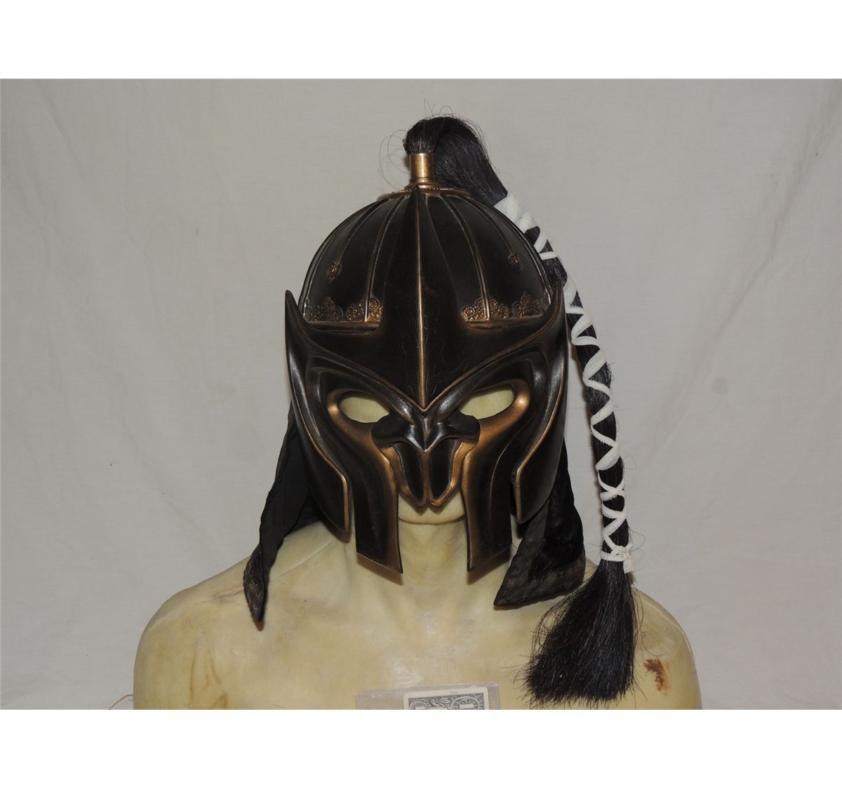 This is 1 of several Ancient Mongolian Warrior helmets with bat like face shields of this type. These are from a noted film, but I can not cite the title in title.