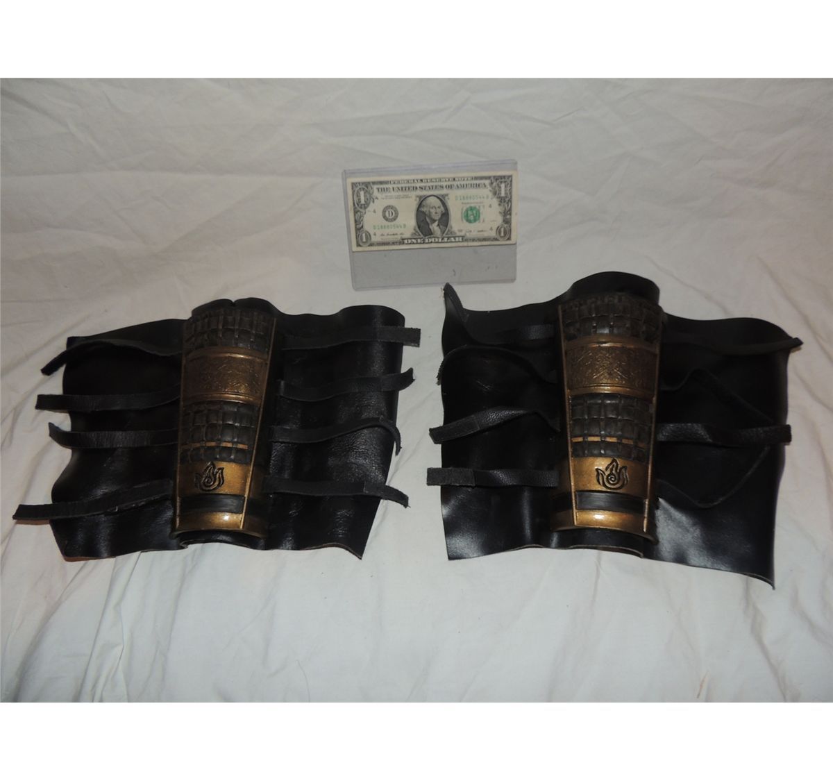 This is a matched pair of Ancient Mongolian Warrior leather gauntlets of this type. These are from a noted film, but I can not cite the title in title.