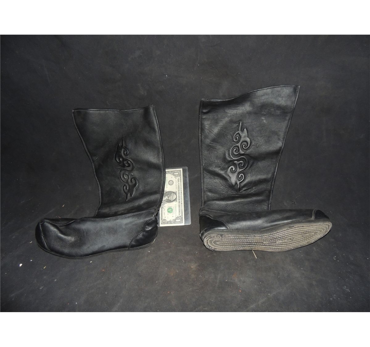 This is a matched pair of Ancient Mongolian Warrior all leather boots. These are from a noted film, but I can not cite the title in title.