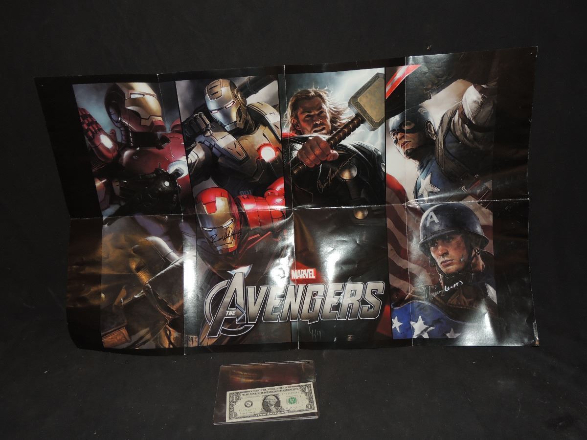 AVENGERS POSTER SIGNED BY ROBERT DOWNEY JR CHRIS EVANS & CHRIS HEMSWORTH