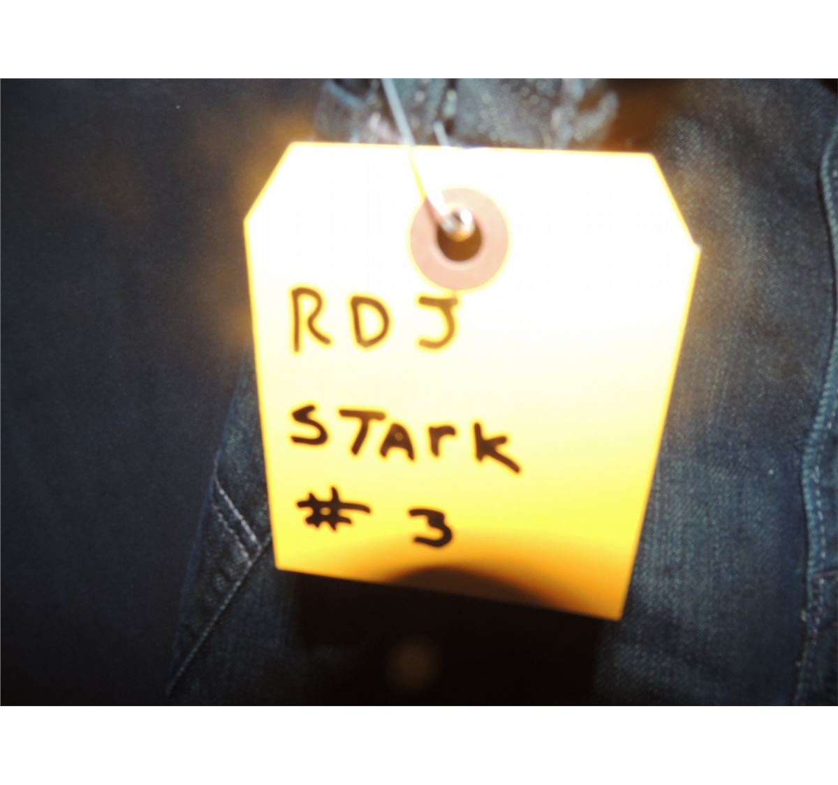 These are a pair of jeans worn by Robert Downy Jr as Tony Stark in THE AVENGERS. They are shown with the jacket, but only the jeans are offered here.