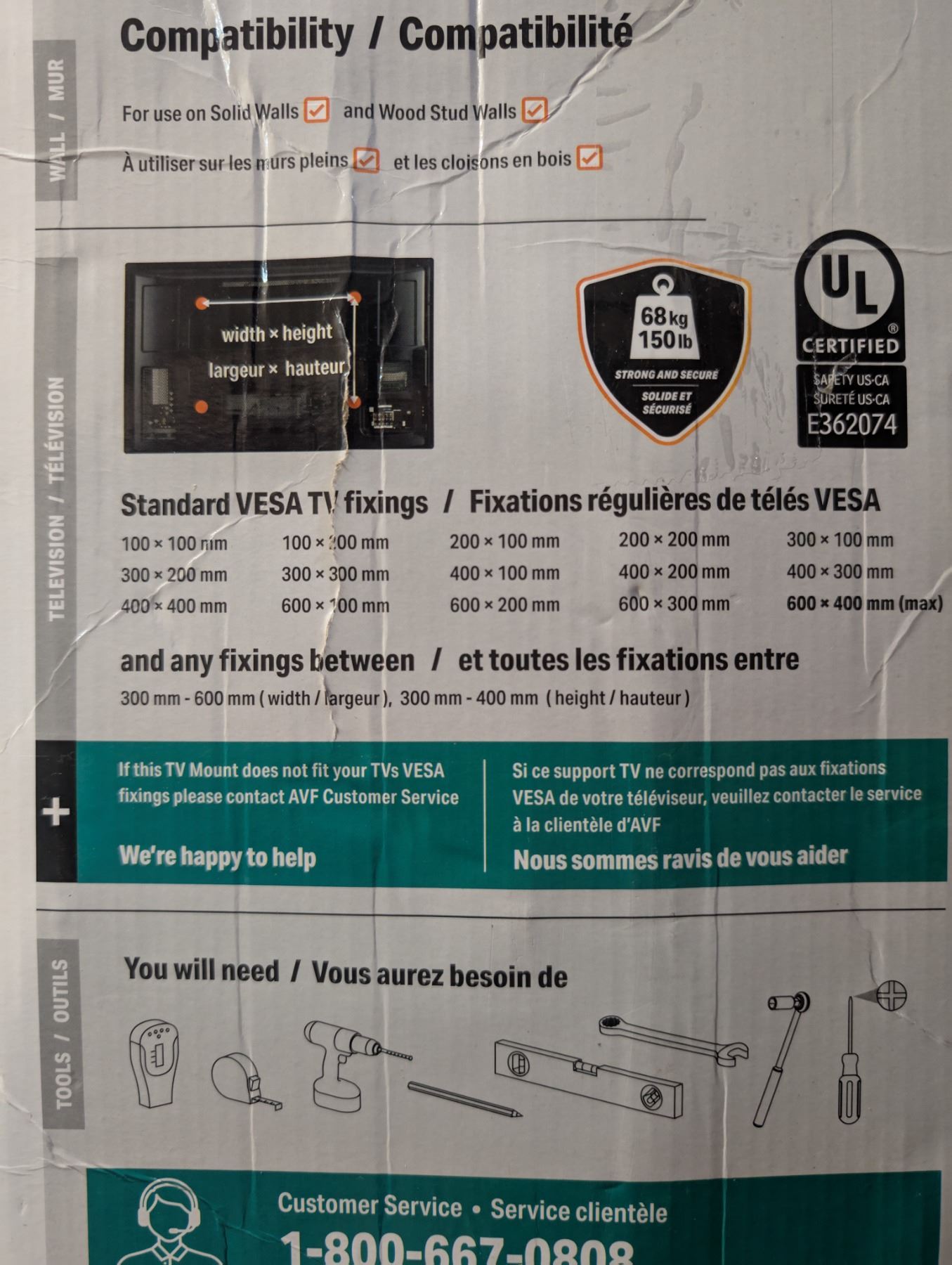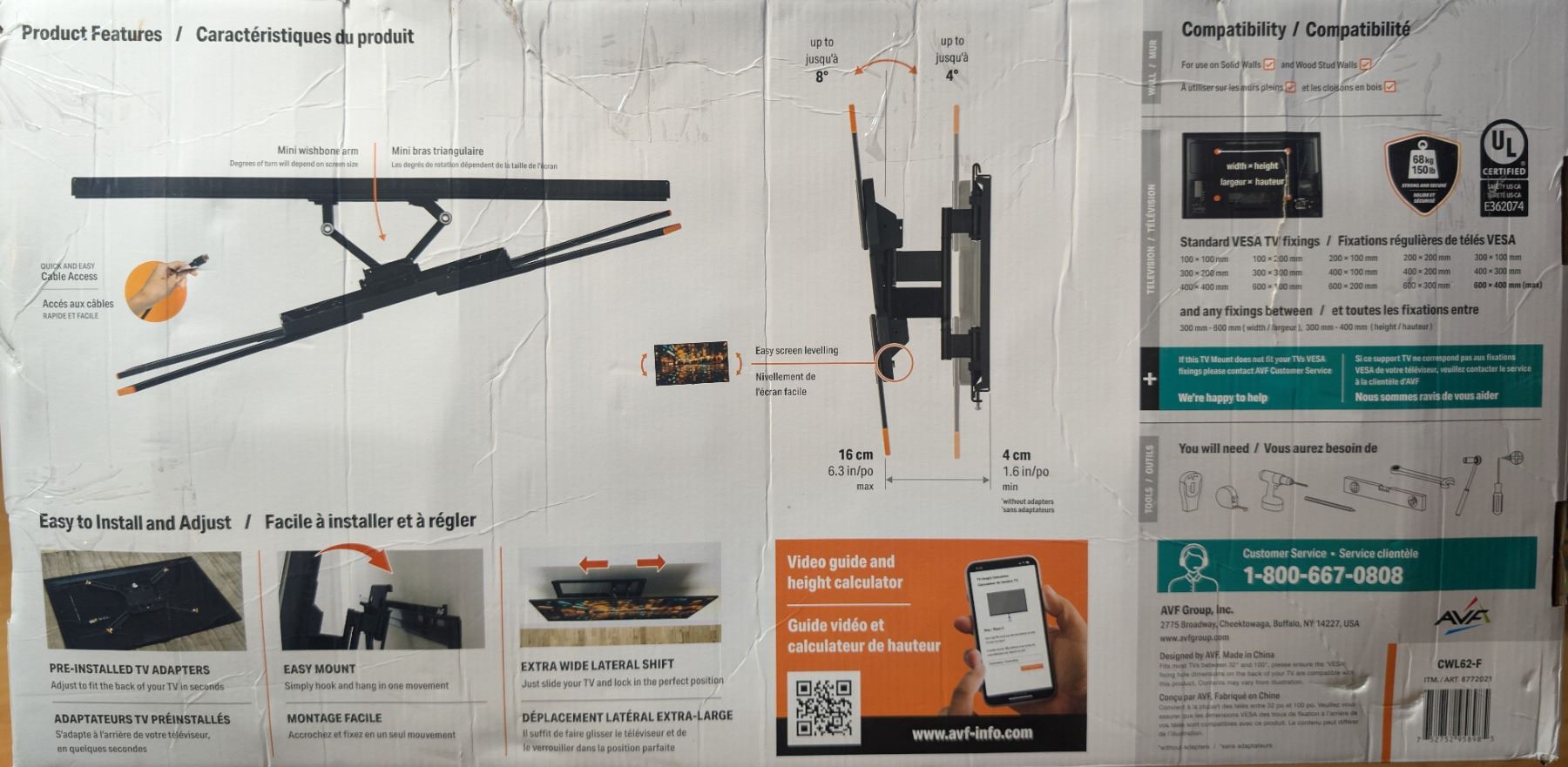 AVF tilt and turn TV wall mount 32-100in (like new in box)