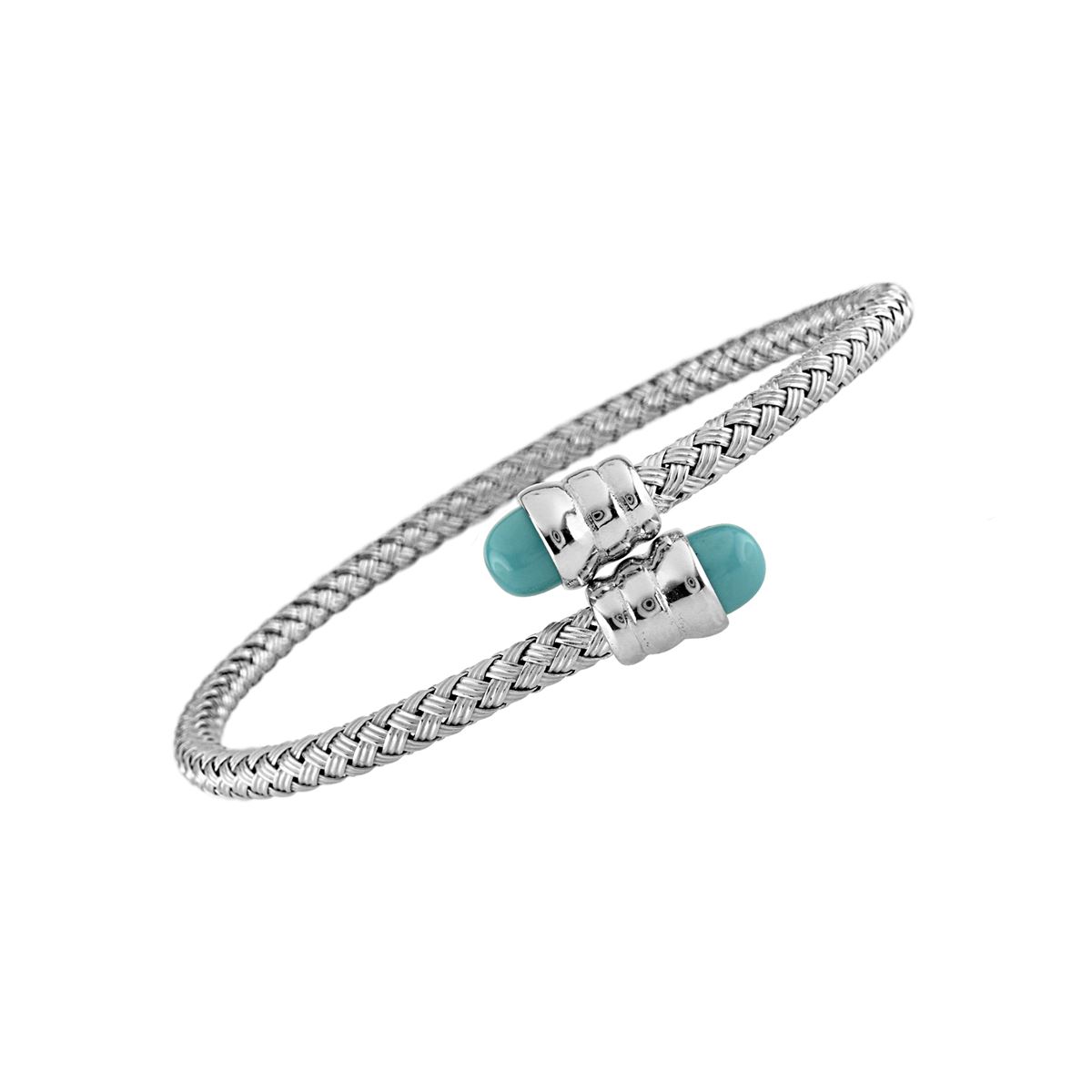 AVG-58MM SS WEAVE TEXTURE SPLIT BANGLE W/TQ END CA - Size AVG (#4266TQ) TOTAL CT WEIGHT 0.0002
