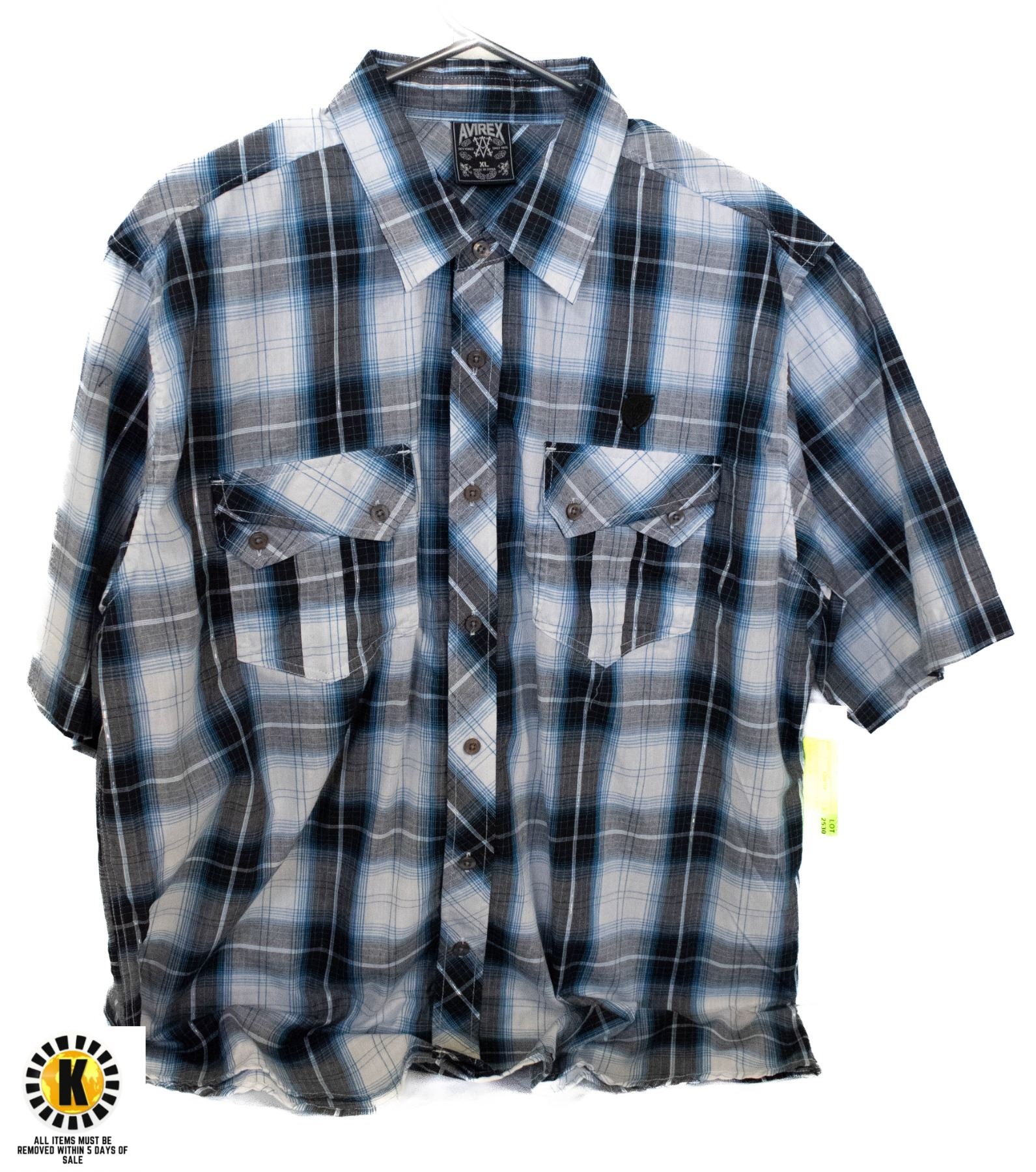 AVIREX SHORT SLEEVE PLAID SHIRT, BLUE &