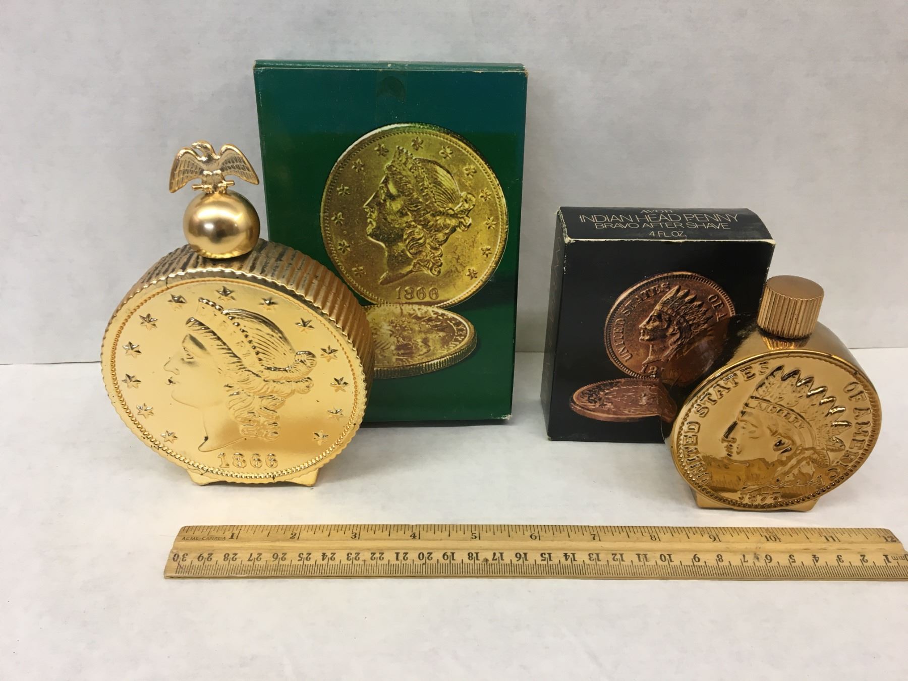 AVON COIN AFTERSHAVE BOTTLES EMPTY WITH BOXES