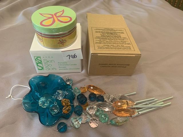 AVON NEW SSS CITRONELLA CANDLE AND SUMMER BREEZE WINDCHIME WITH CRYSTALS 12 “ IN LENGTH