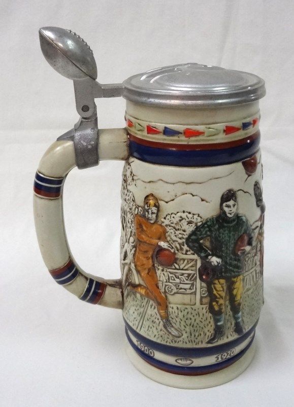 AVON STEIN/MUG GREAT AMERICAN FOOTBALL HANDCRAFTED IN BRAZIL & Ernie Banks 1997 500 Home Run Club Signature Baseball Bat Coors Beer Bottle. EST 40.00-50.00