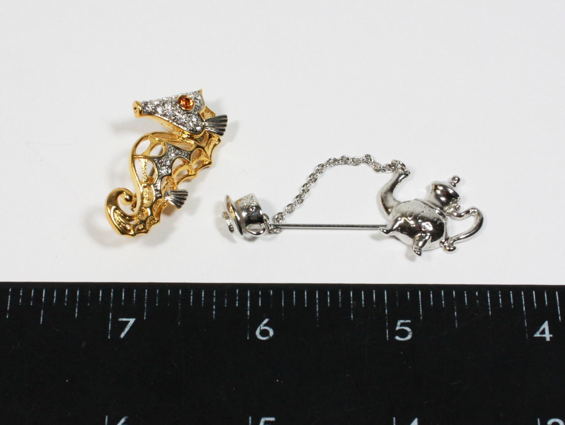AVON TEAPOT PIN AND RHINESTONE SEAHORSE