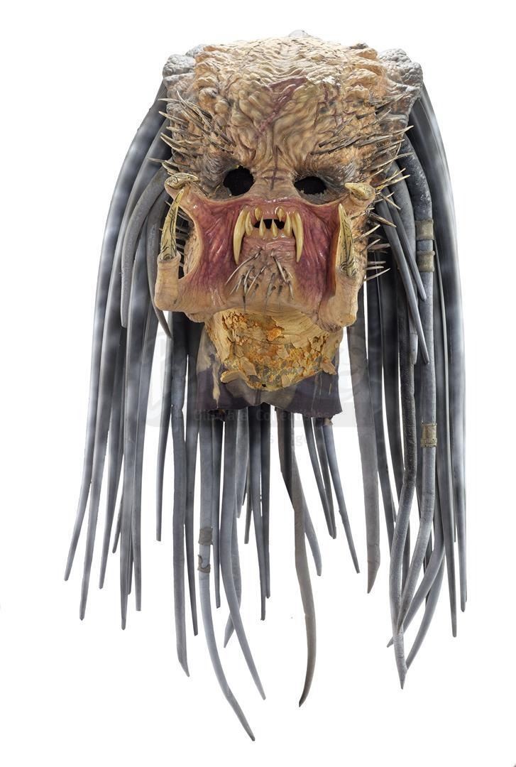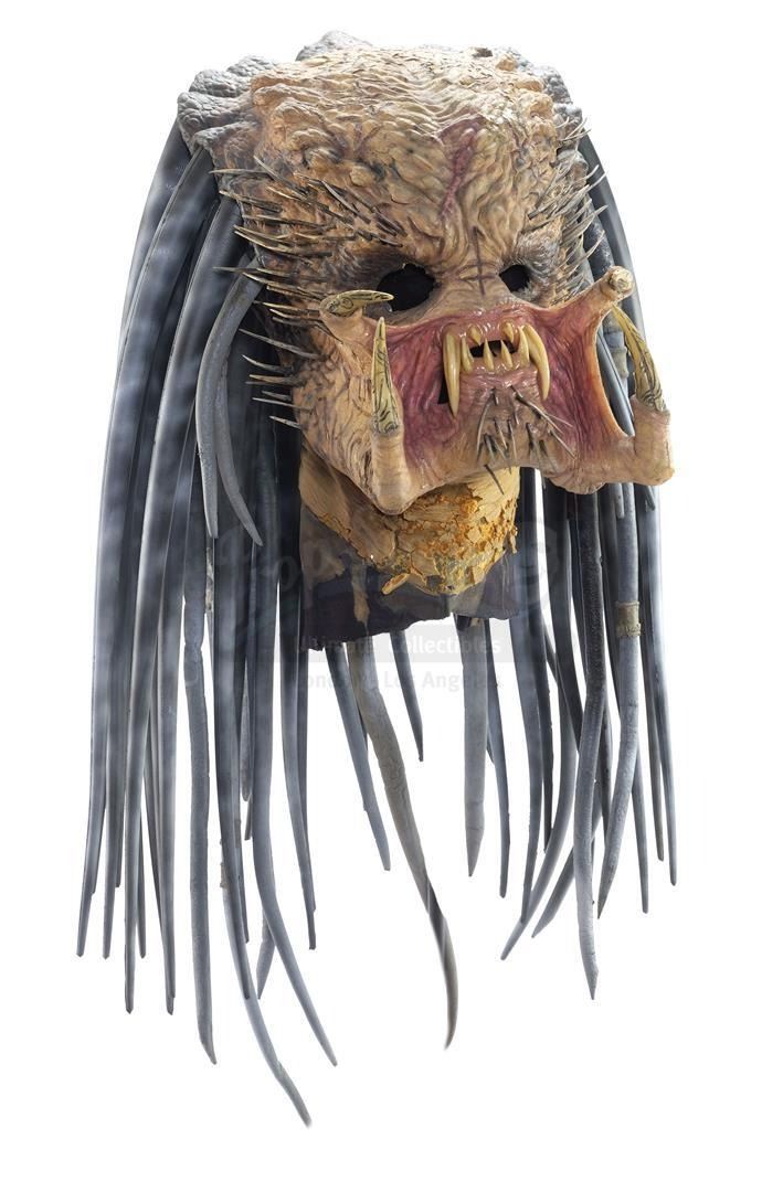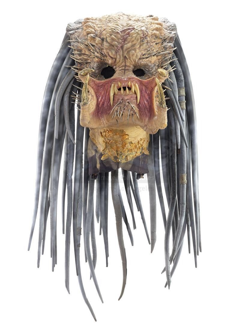 An Ancient Predator (Ian Whyte) mask and necklace from Paul W. S. Anderson's sci-fi action film AVP: Alien vs. Predator. In the final scene, The Ancient gifted Lex Woods (Sanaa Lathan) a Combistick after she survived the Yautjas' Antarctica hunt for xenomorphs.