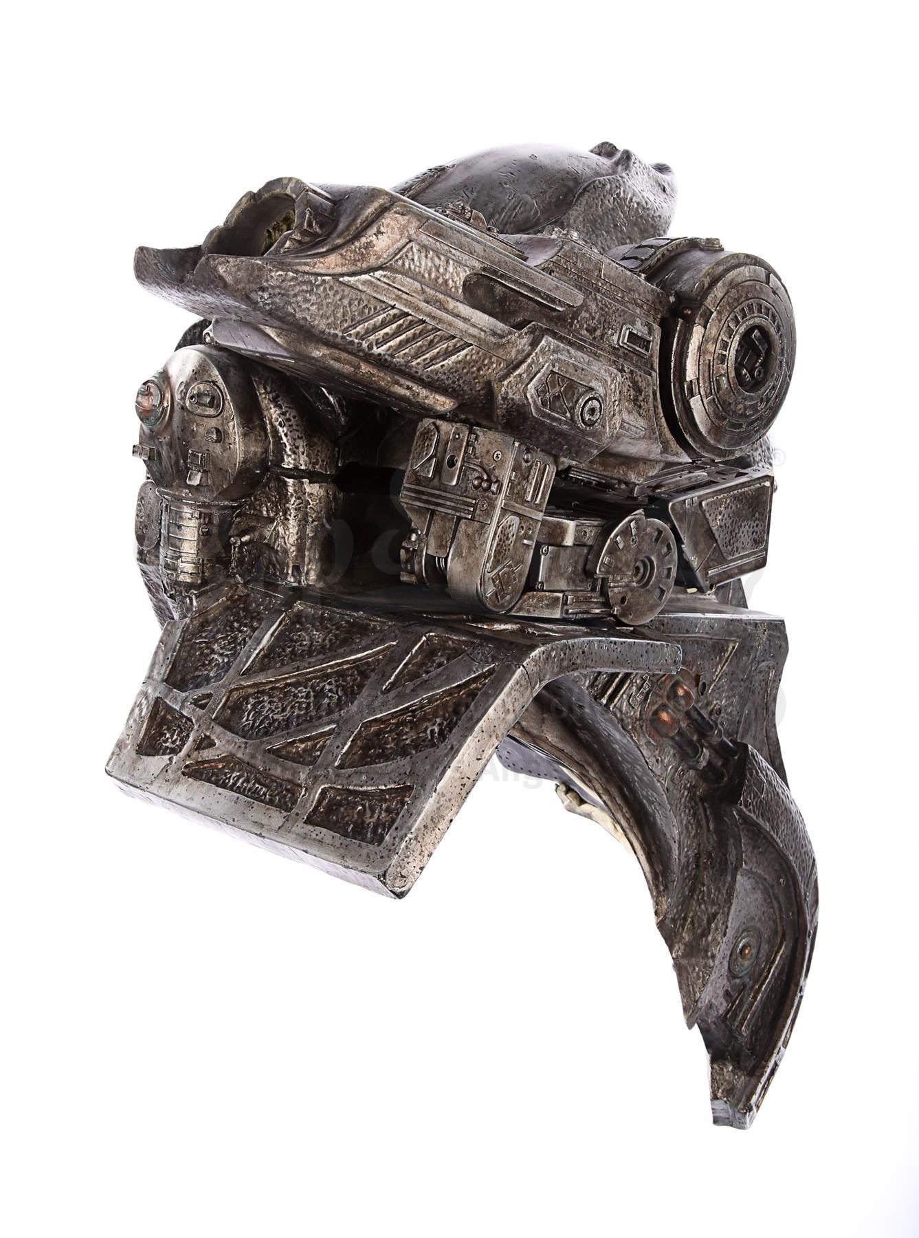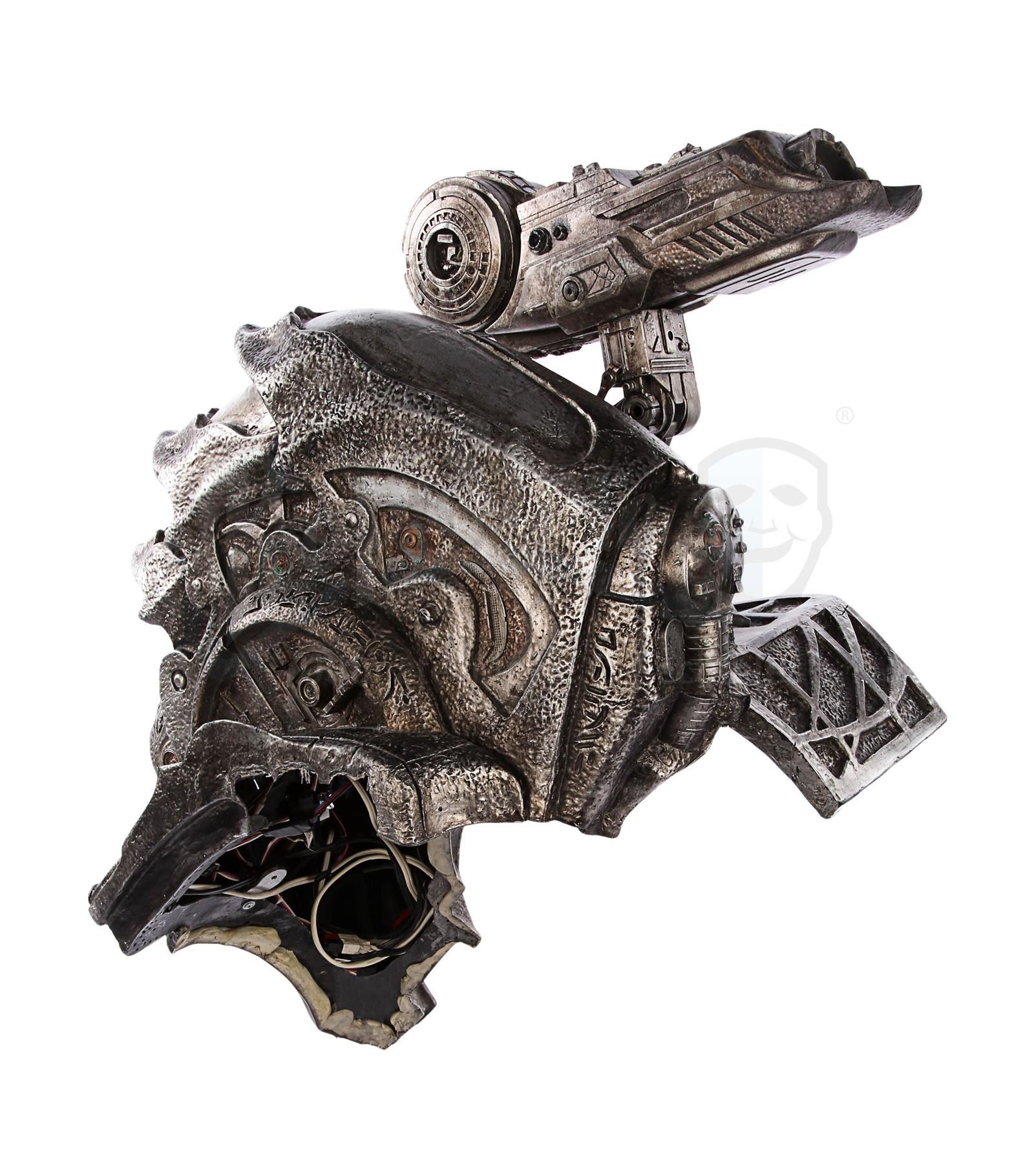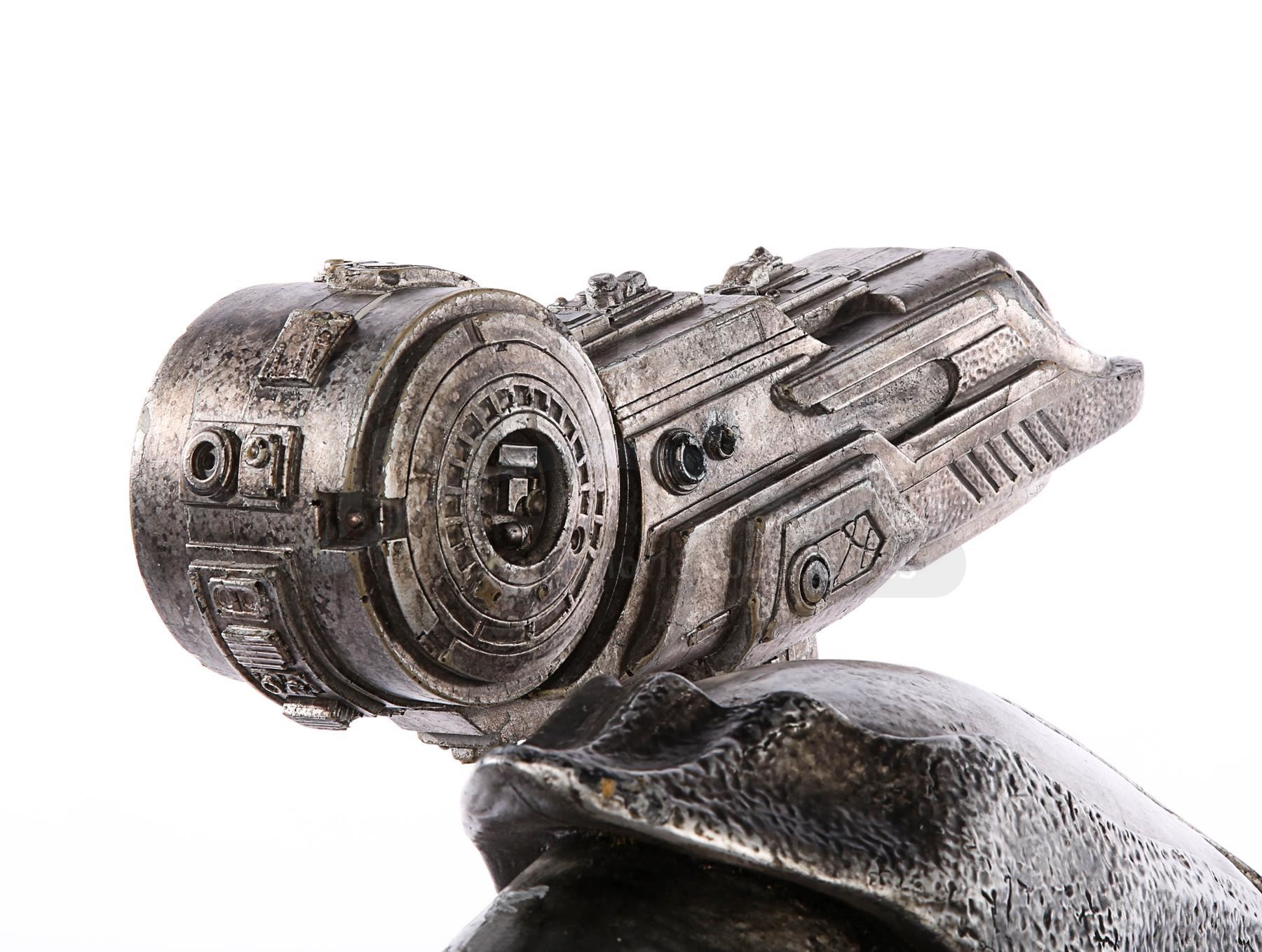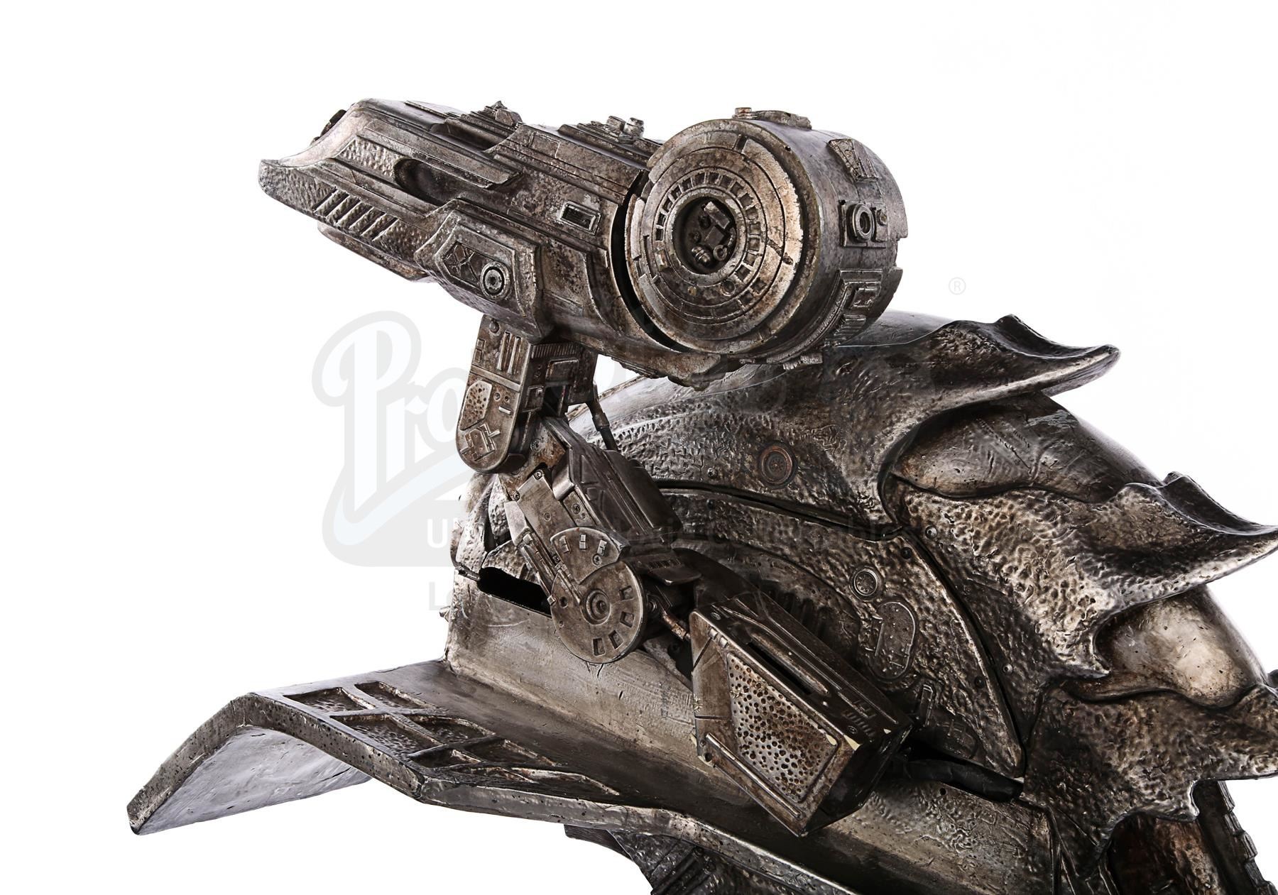 An animatronic Predator shoulder cannon from Paul W.S. Anderson's sci-fi action film AVP: Alien vs. Predator. The Yautja, more commonly known as Predators, wore their shoulder weapons as they performed their rites of passage, battling xenomorphs in an ancient, submerged pyramid. Alexa Woods (Sanaa Lathan) was saved by the Predator Scar (Ian Whyte) after his cannon was returned to him, and he used it to kill numerous xenomorphs during her desperate escape.