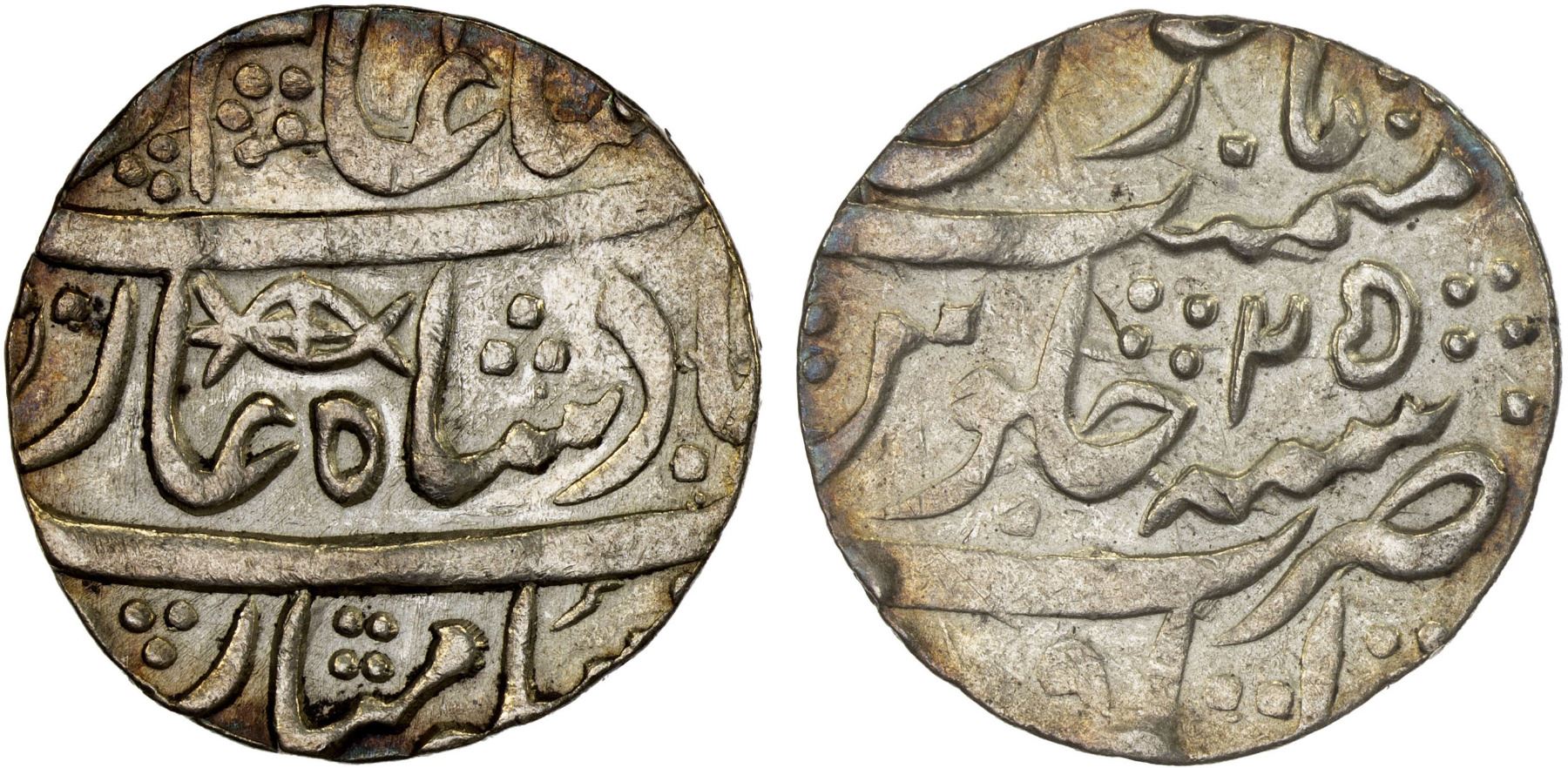 AWADH: AR rupee, Itawa, year 25, KM-76.4, vajra in obverse field, lovely strike, XF.