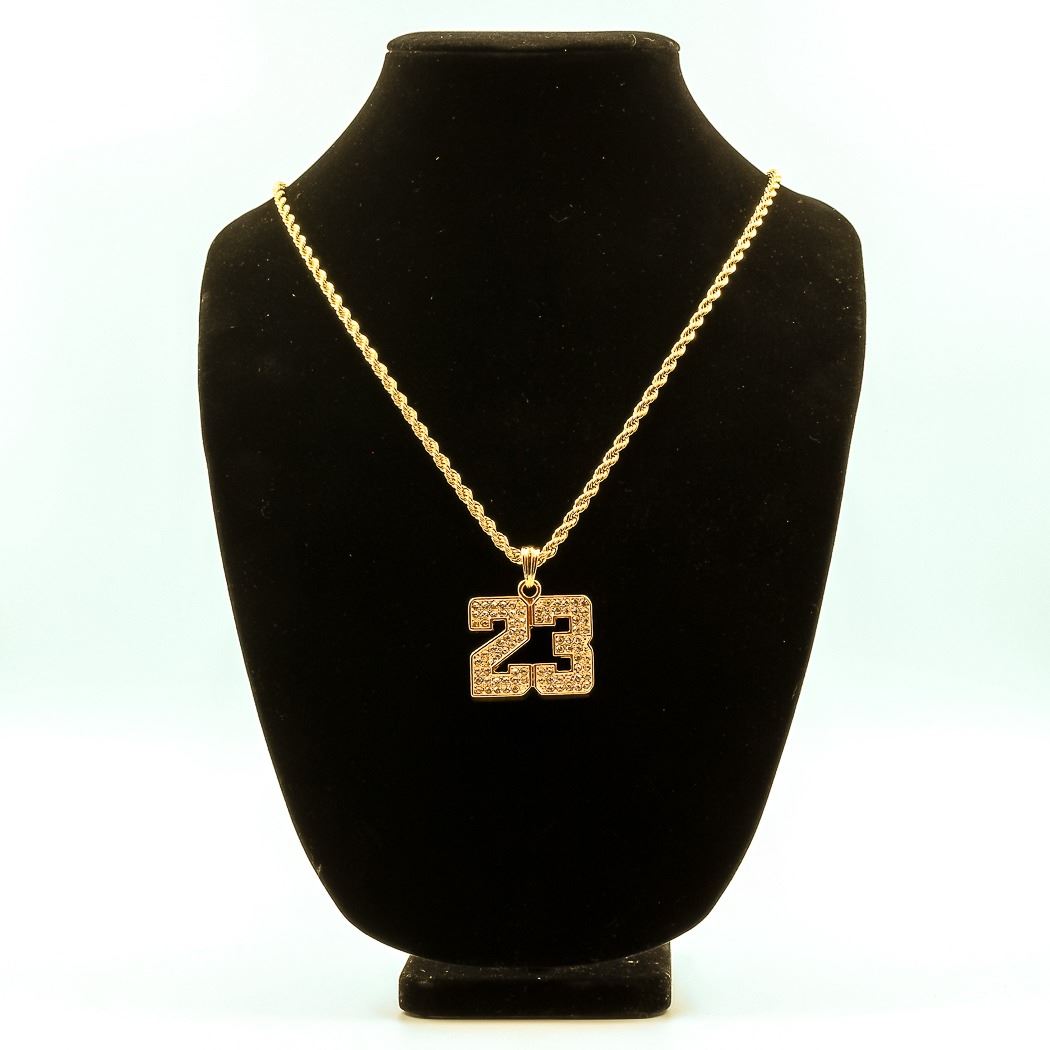 AWESOME 14 Kt. GOLD PLATED MICHAEL JORDAN PENDANT.This commemorative Michael Jordan number 23 pendant looks as great as he played. This pendant hangs from a 14 Kt Gold Plated 4mm 24 " rope chain. Looks like solid gold without the solid gold price.Approx 39.5 total gram wt. The chain and the pendant come together so really 2 items included together for just one price.Ready to wear now or anytime.