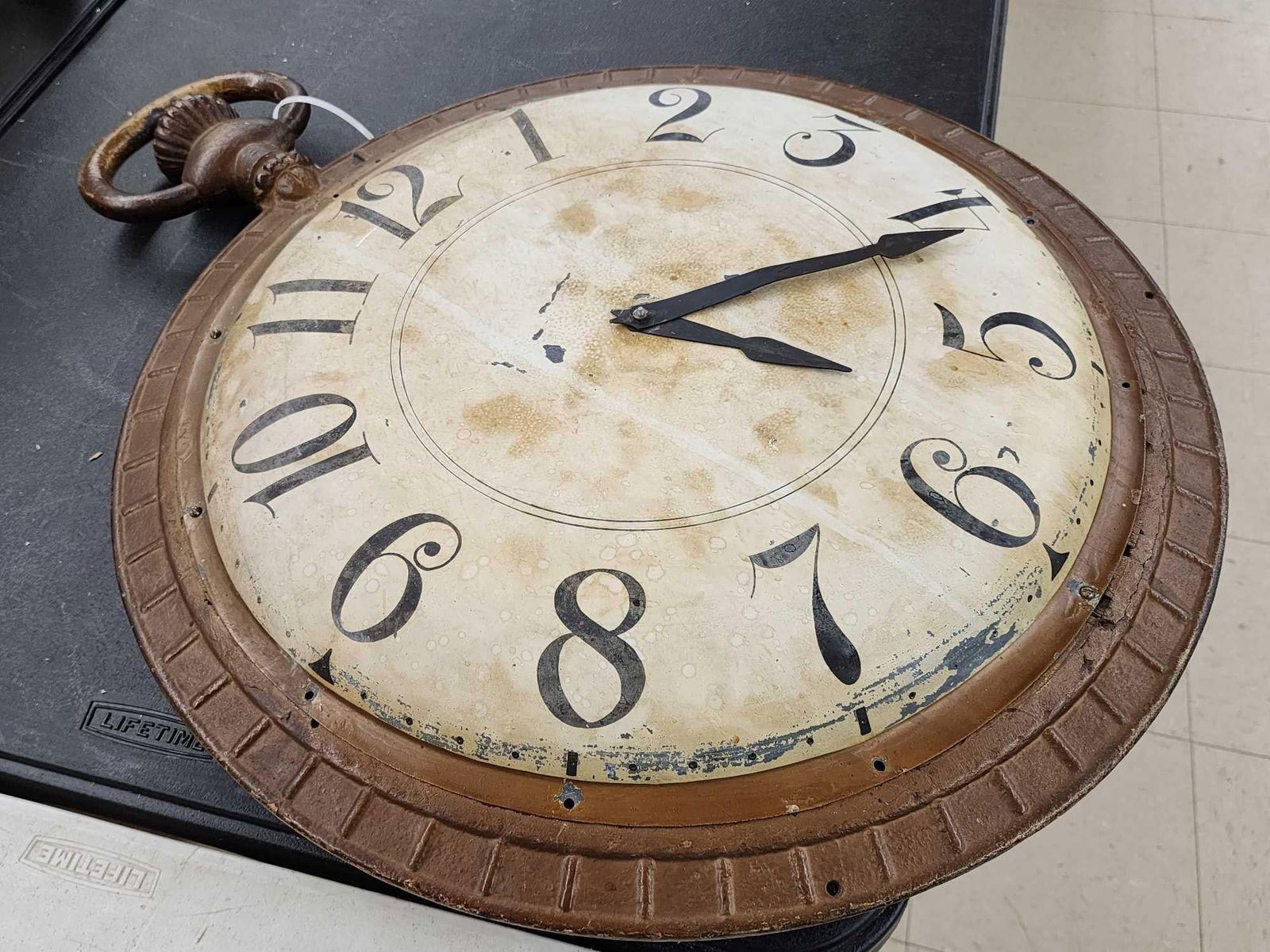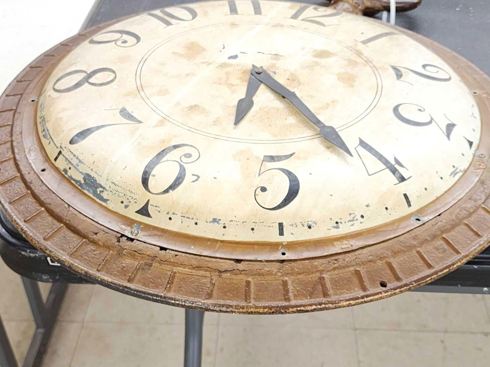 73.37 Outstanding watch makers sign cast Iron frame with tin front about 24" wide x 30" tall weight 31.3 Lbs