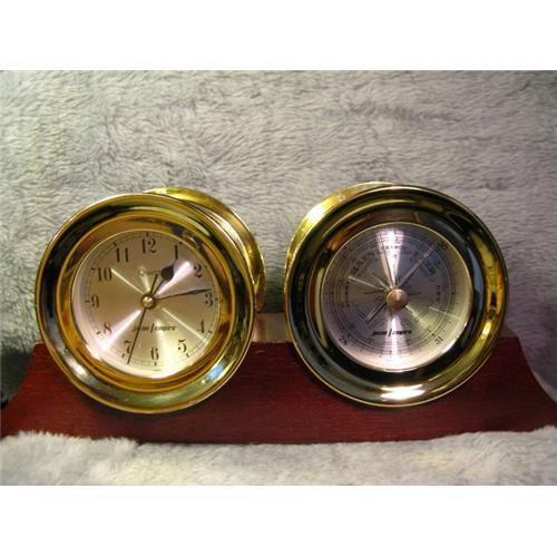 BEAUTIFUL BAROMETER AND QUARTZ SHIP'S CLOCK SET WITH NICE MAHOGANY STAND IN EXCELLENT CONDITION BOTH MECHANICALLY AND COSMETICALLY. THE WEIGHT IS APPROX. 7 POUNDS TOTAL INCLUDING THE SOLID MAHOGANY BASE. DIMENSION'S AND WEIGHT(EACH PIECE) AVAILABLE UPON REQUEST!